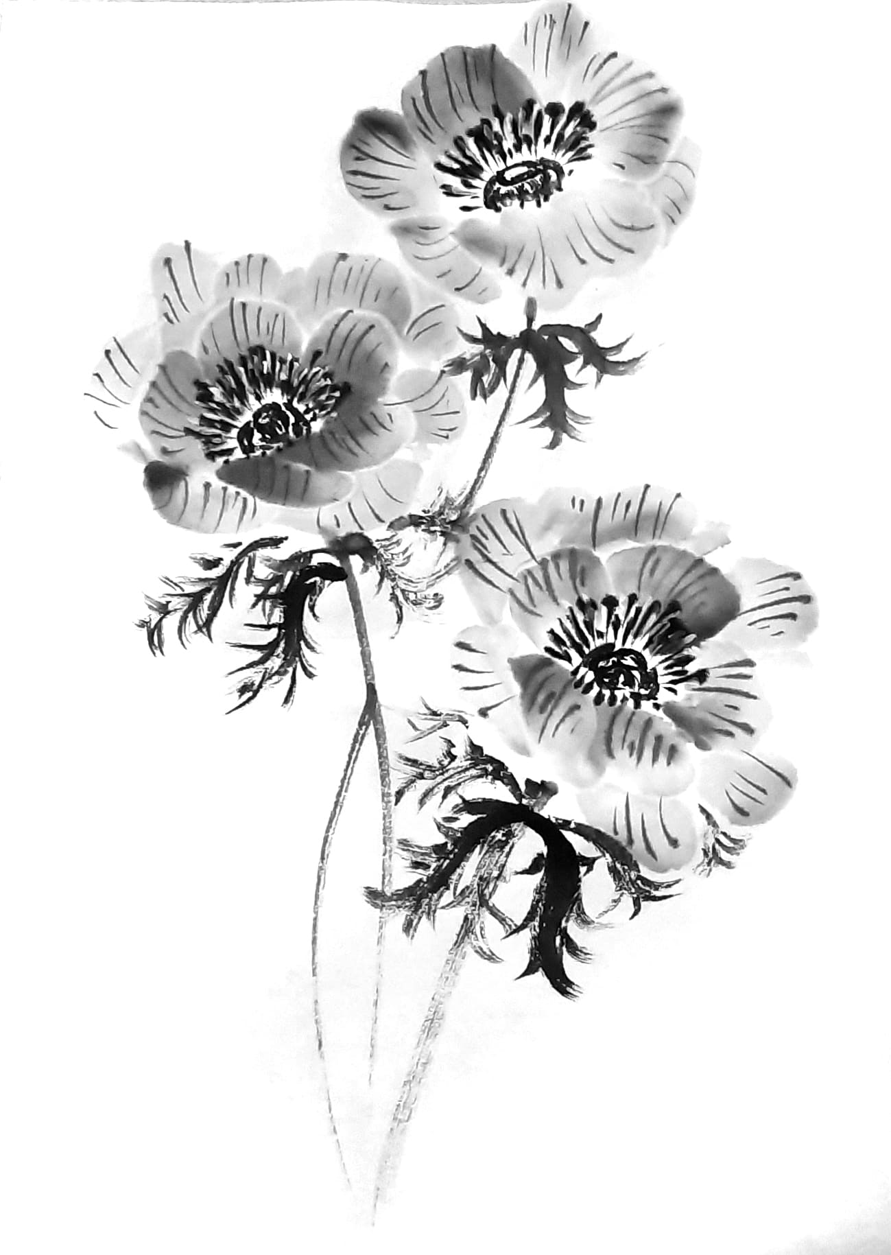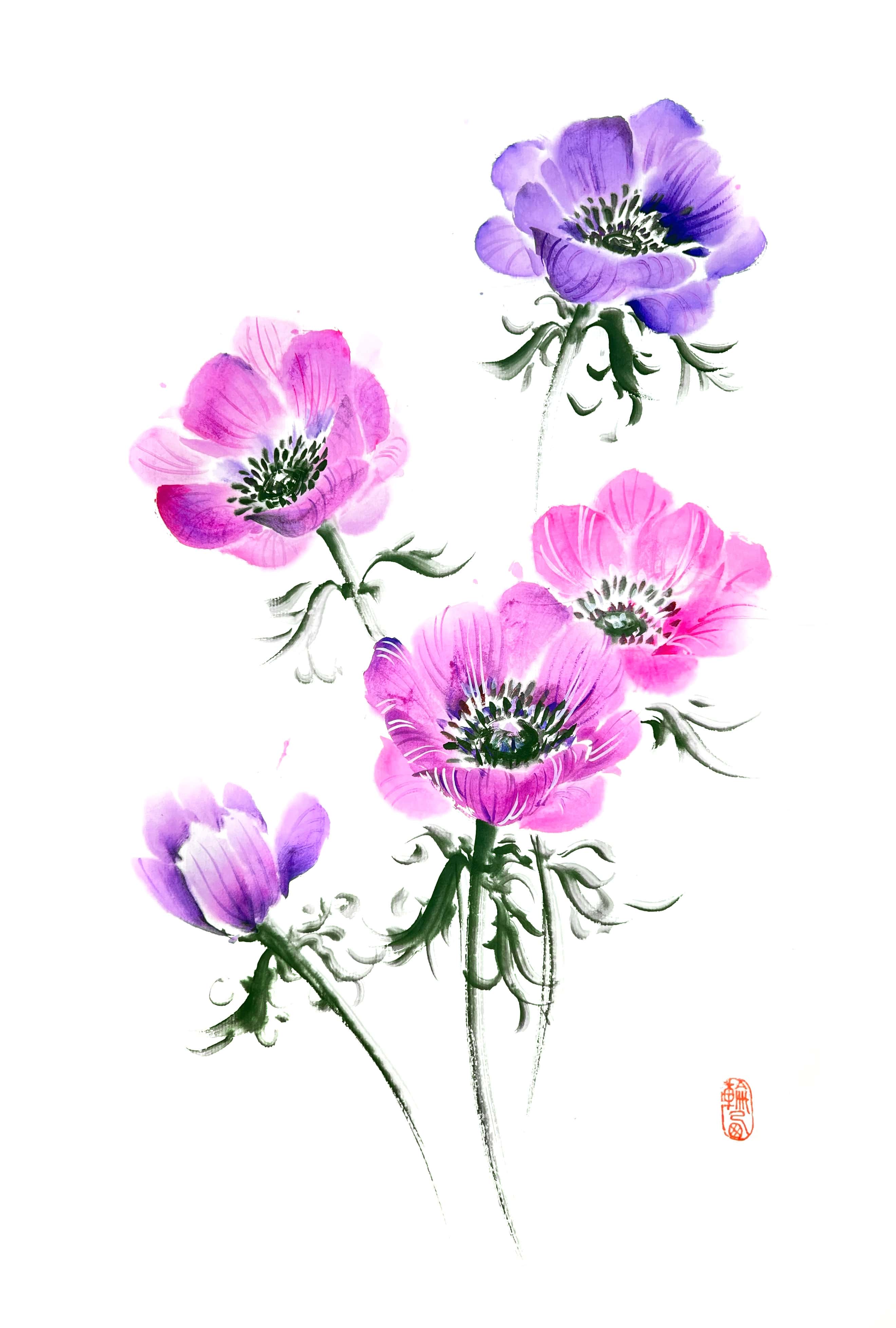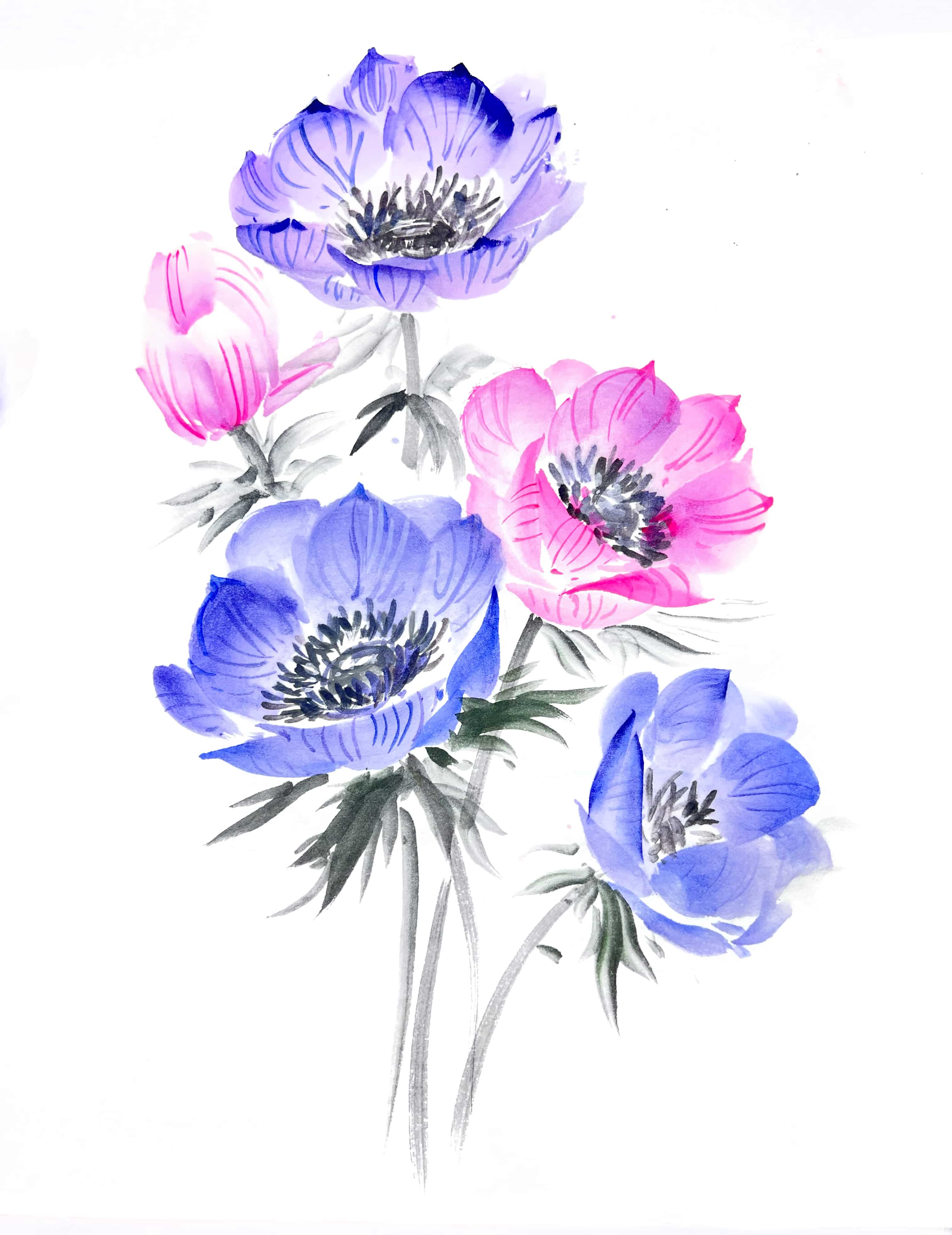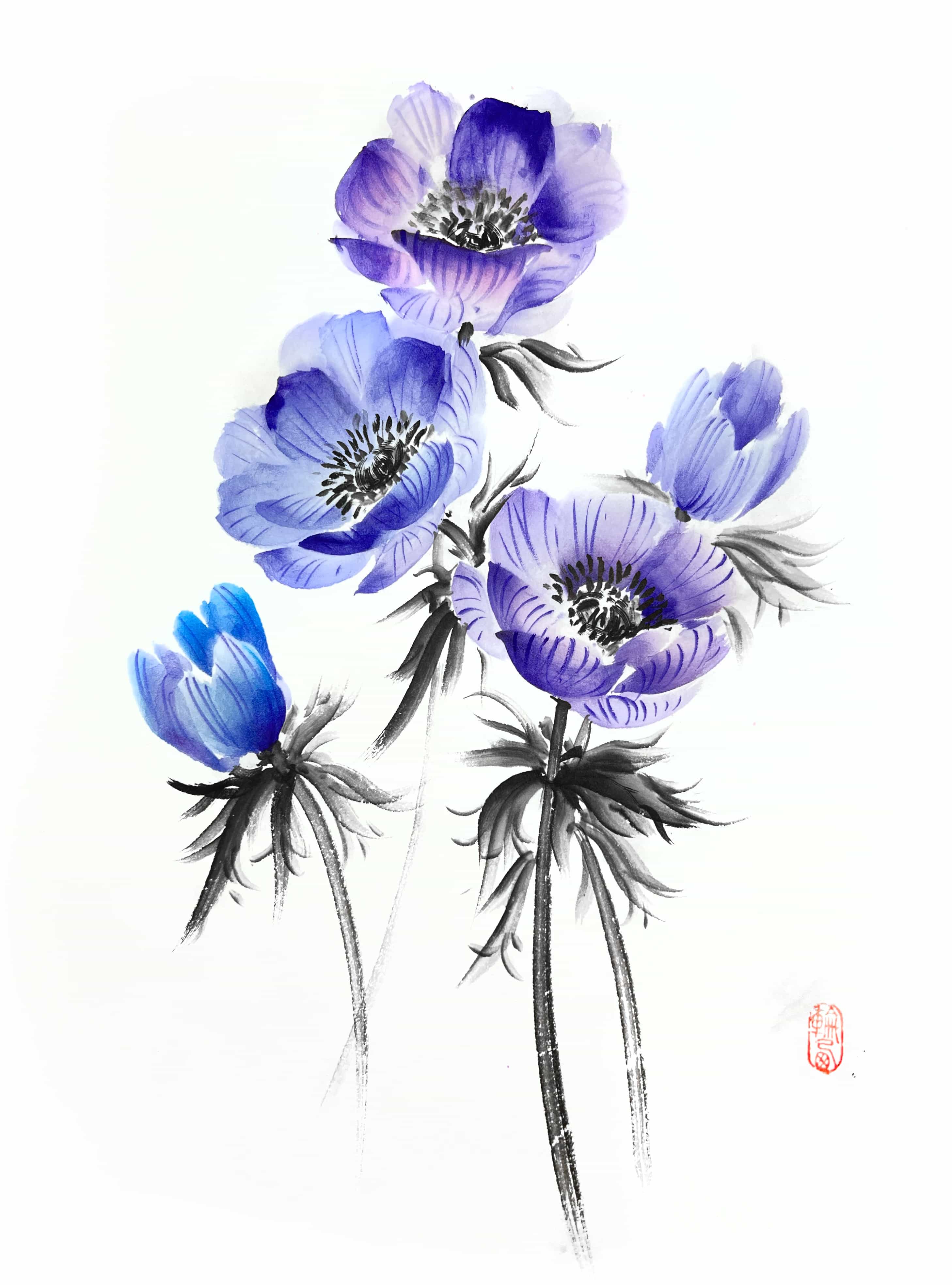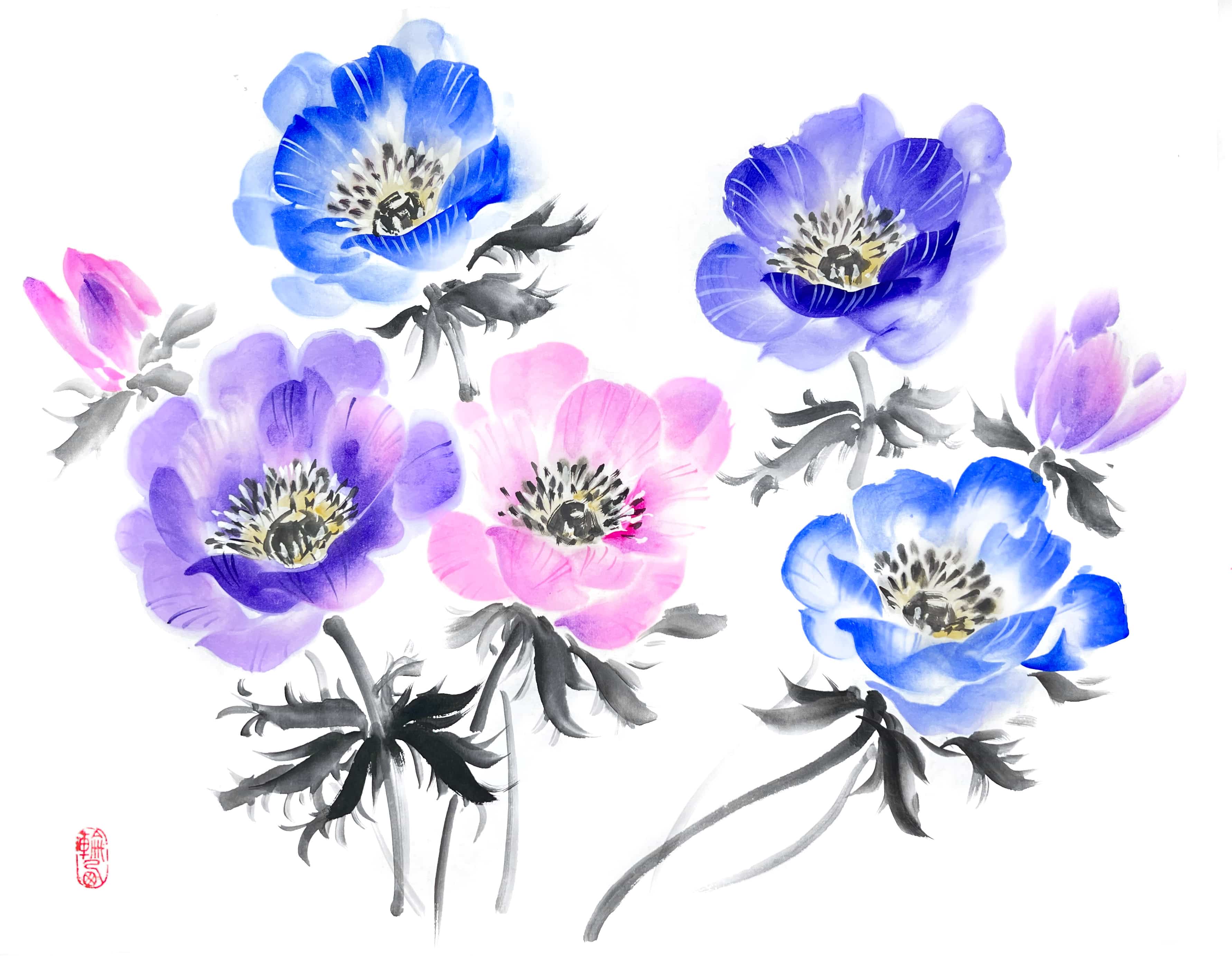 2. Освоим особенности работы с цветом в стиле бокусайга и смешение цветов для получения "свежего и чистого" впечатления от сюжета с анемонами