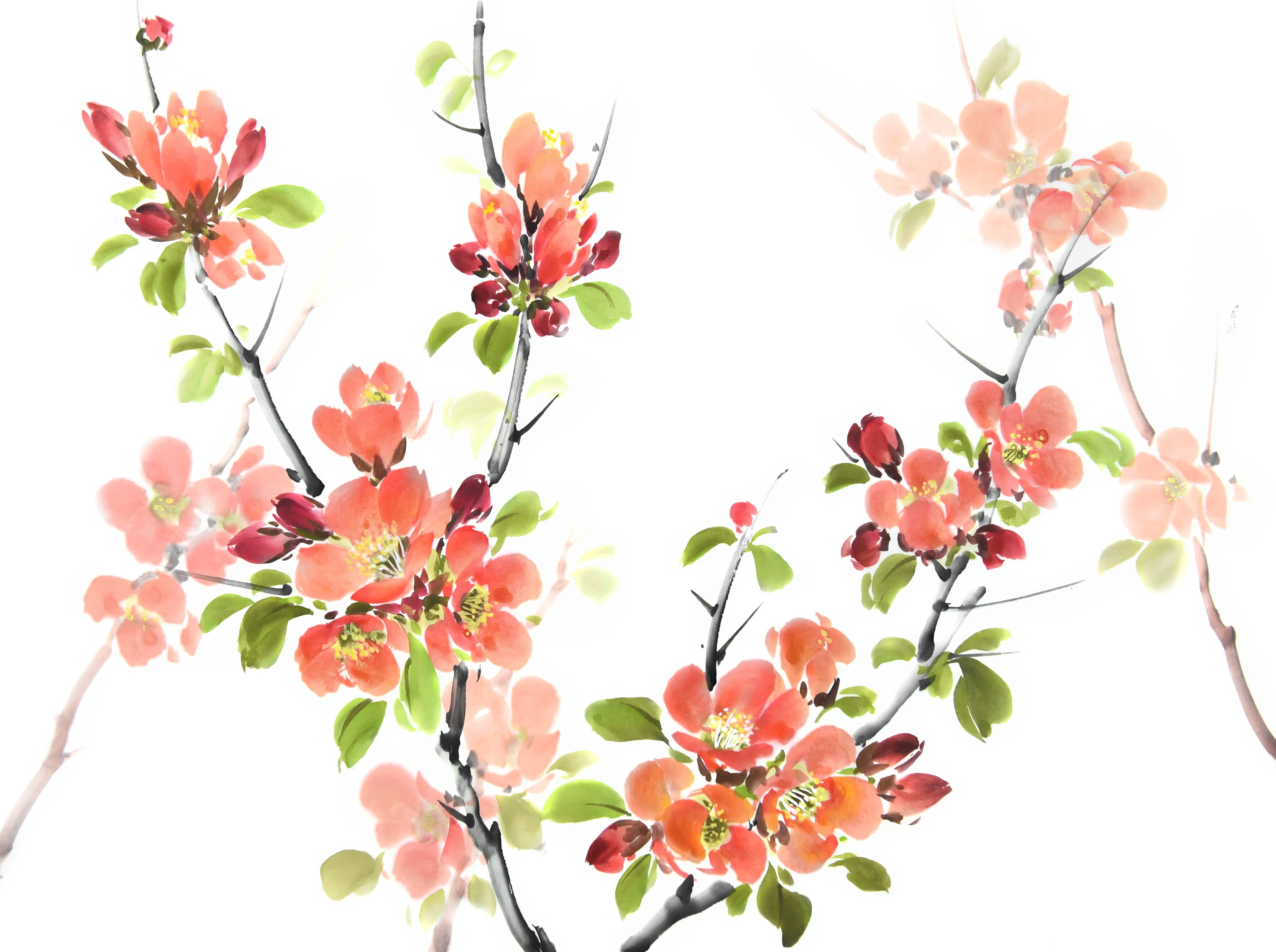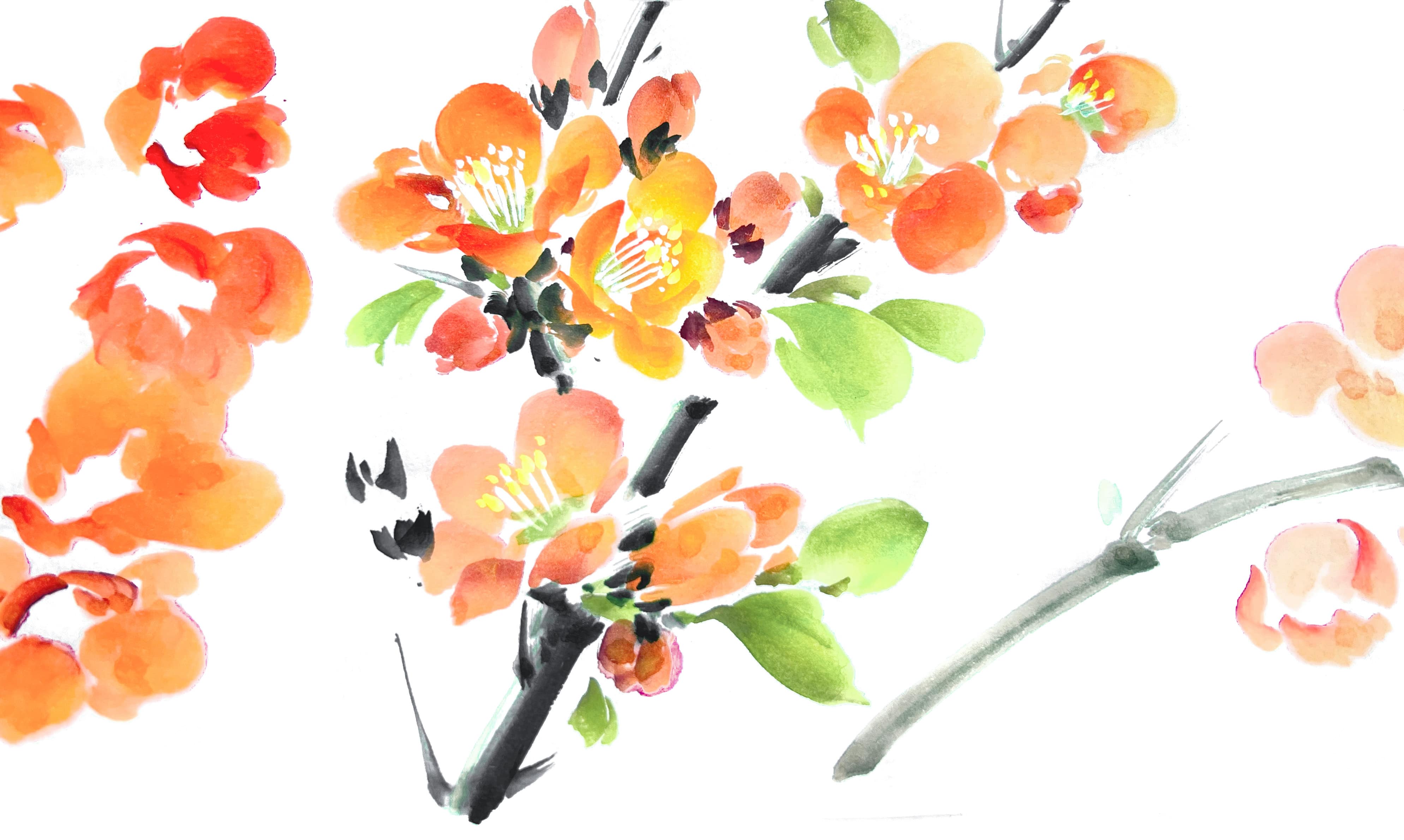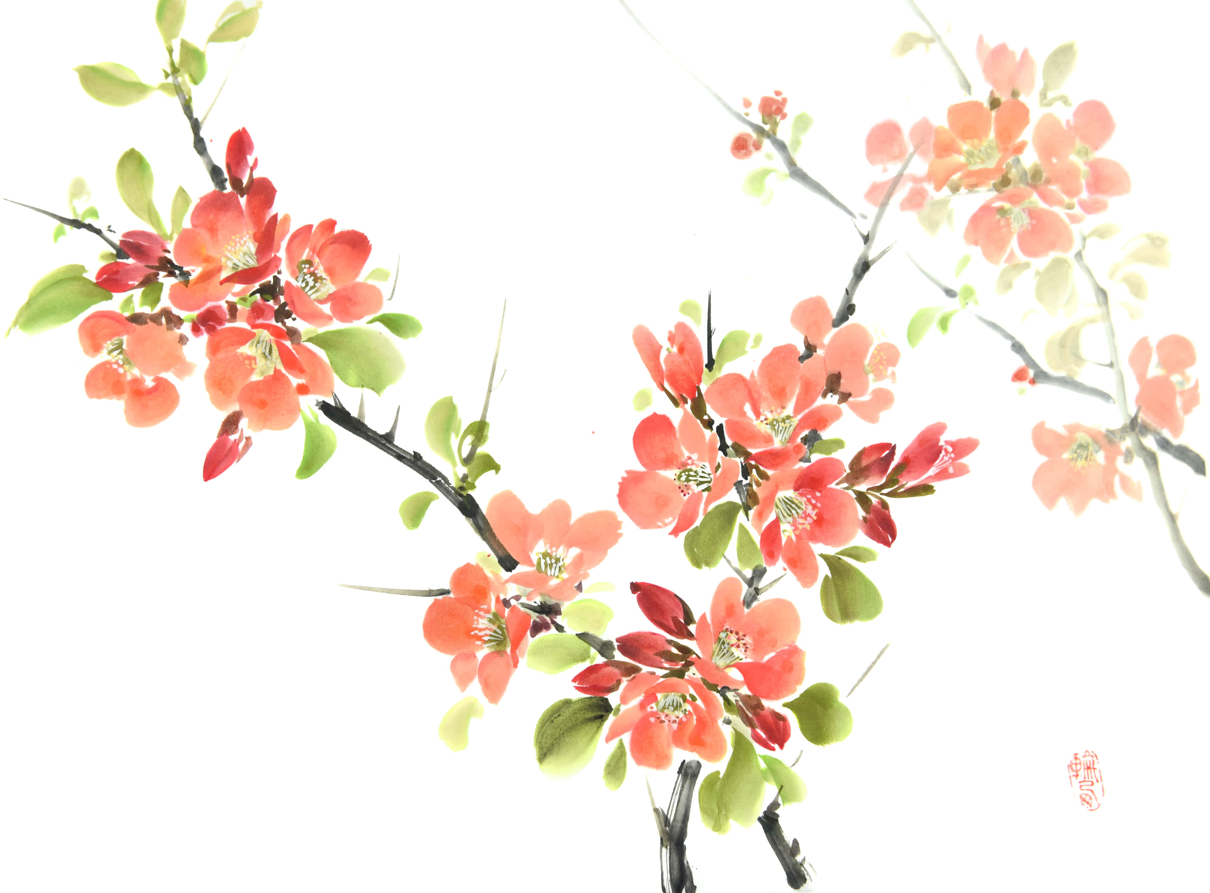 3. Освоите две техники написания (мнохром и цвет) анемона и айвы в цвете