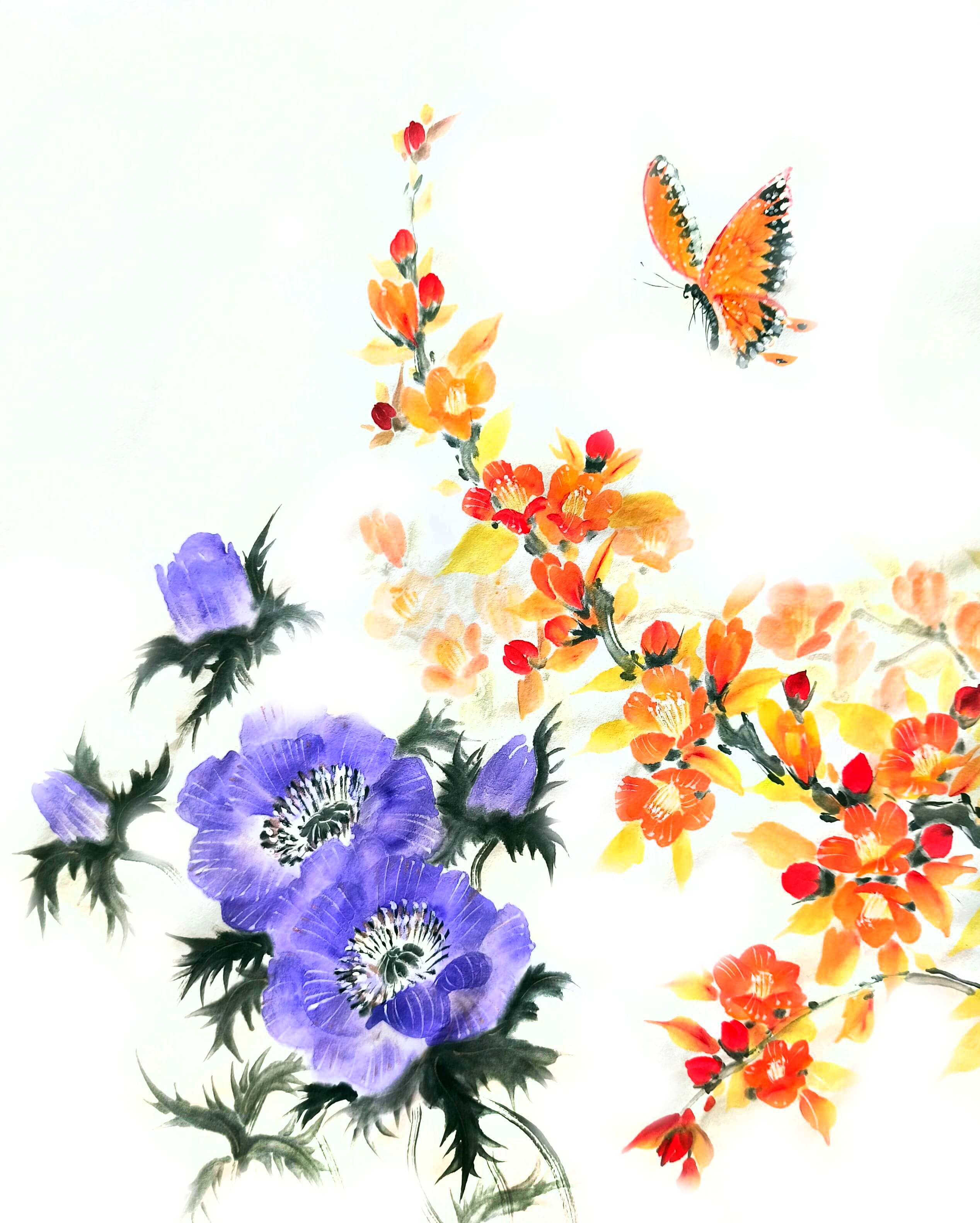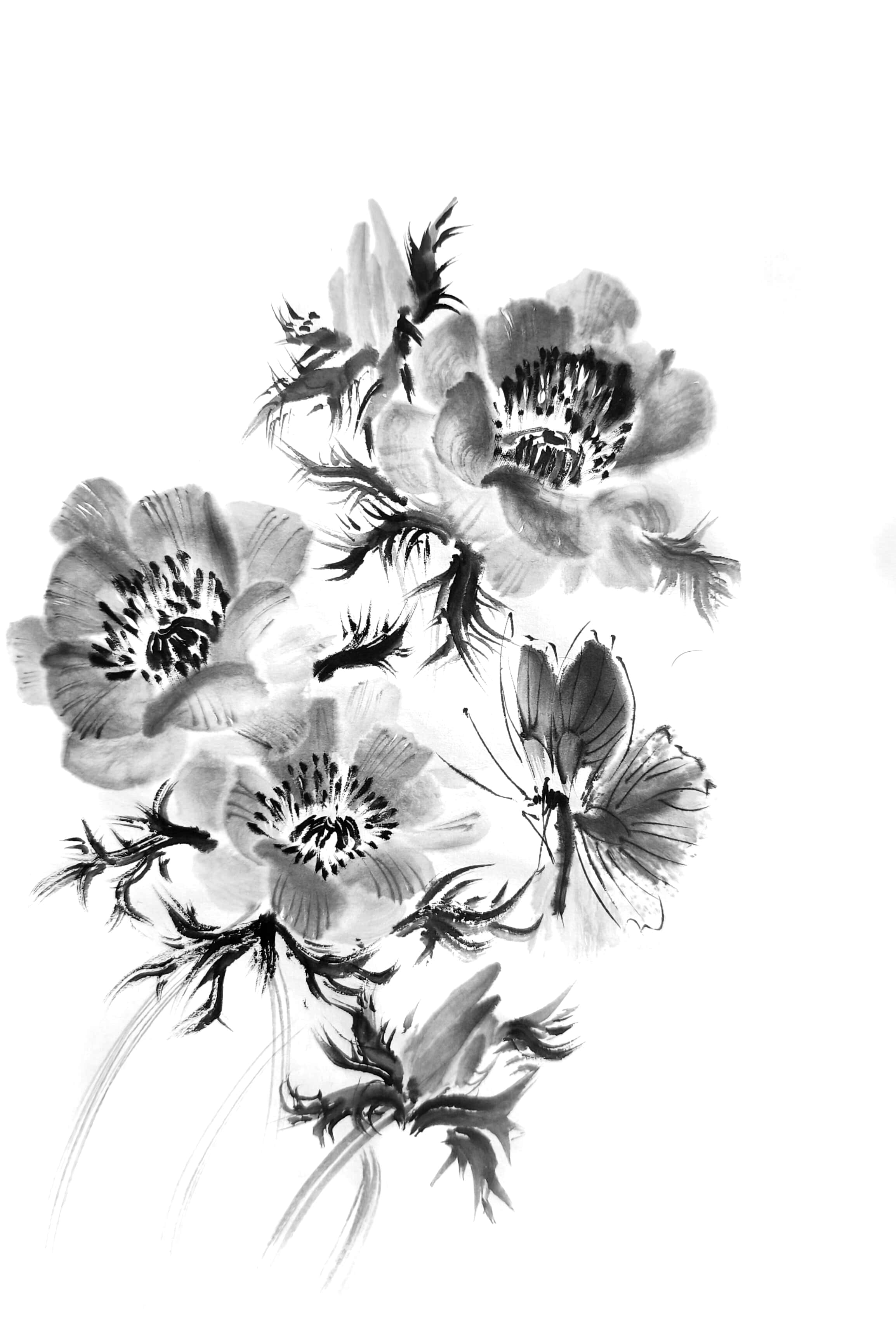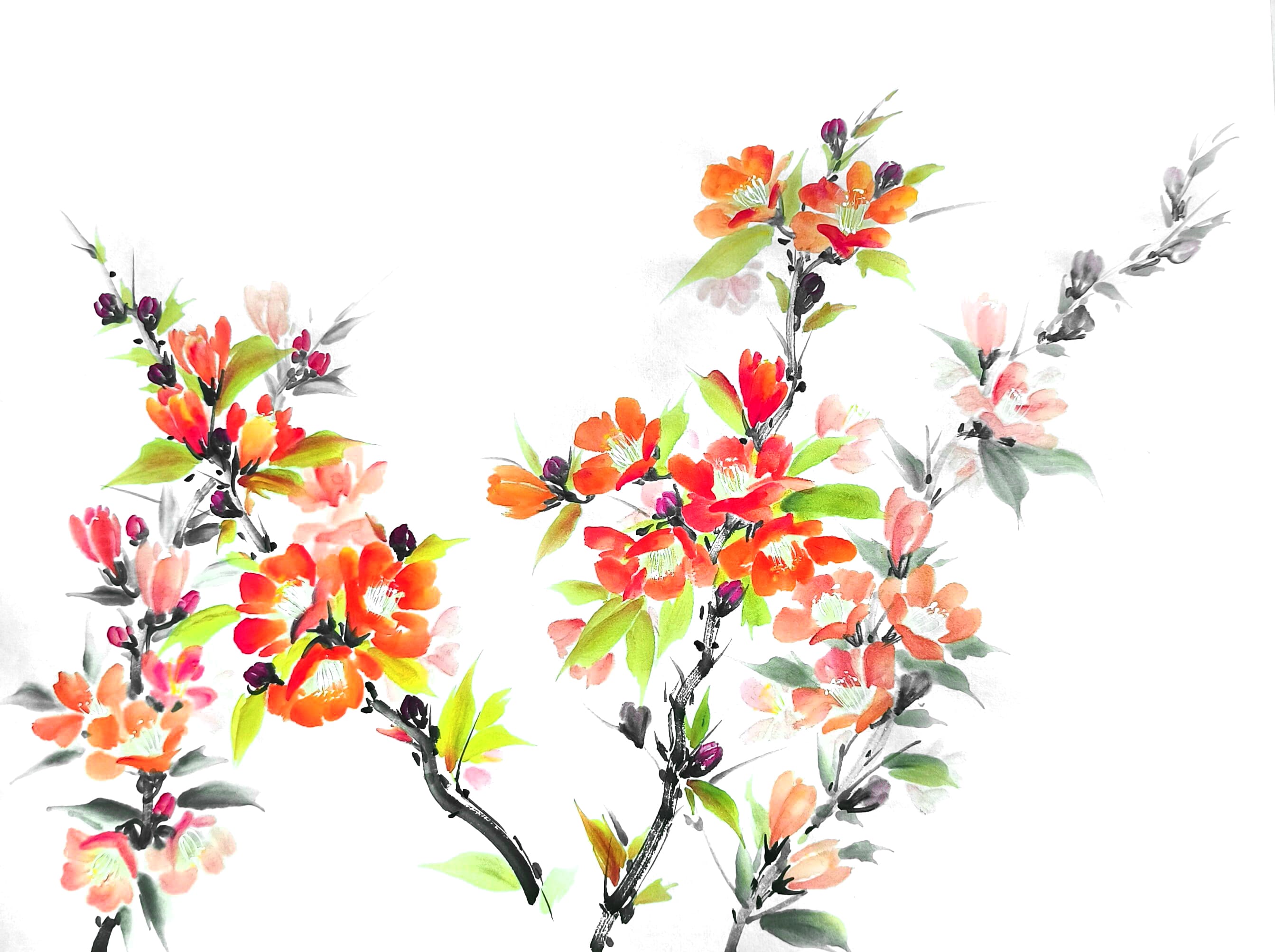 3. Освоите две техники написания (мнохром и цвет) анемона и айвы в цвете