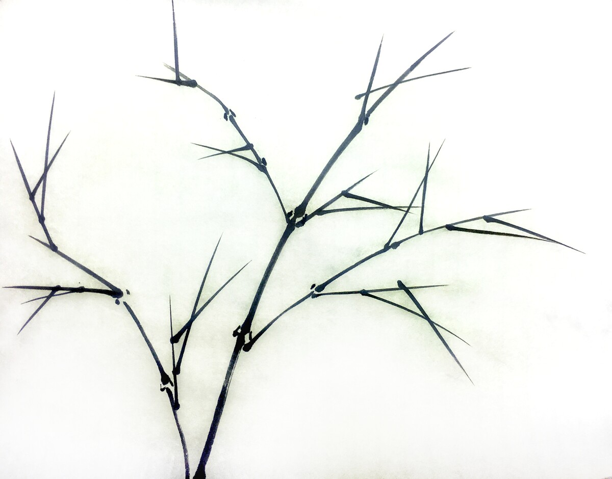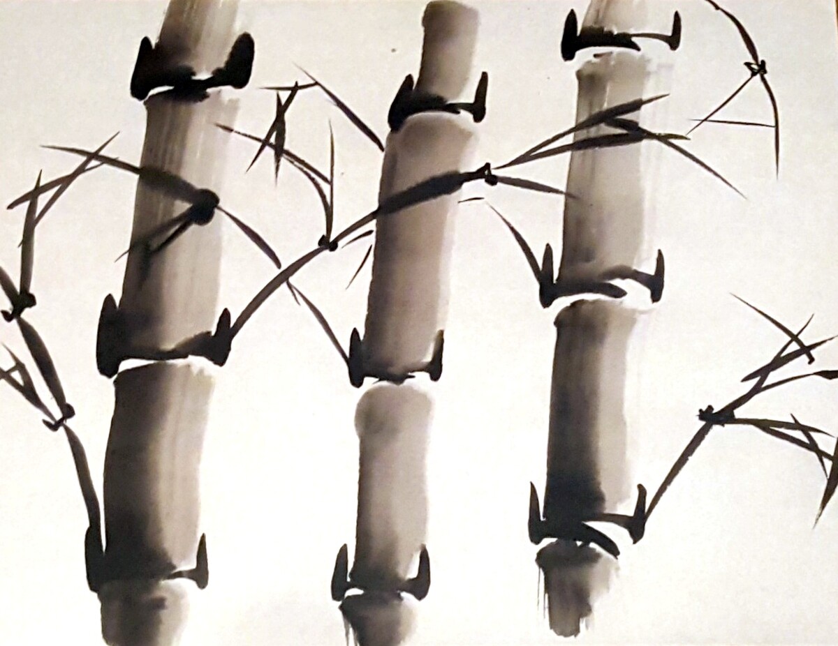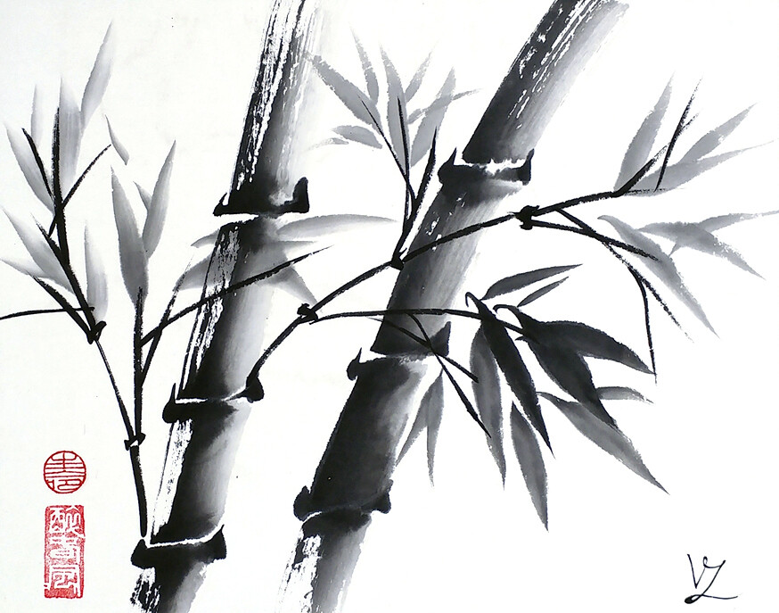 На примере данного сюжета, мы освоим базовые мазки и способы набора оттенков туши на кисть. Движения используемые при написание бамбука, развьет в нас чувство уверенности и сдержанности.