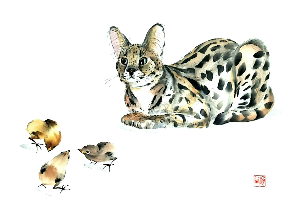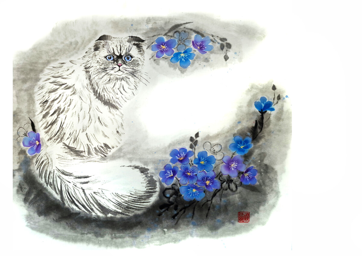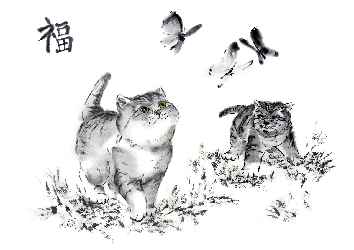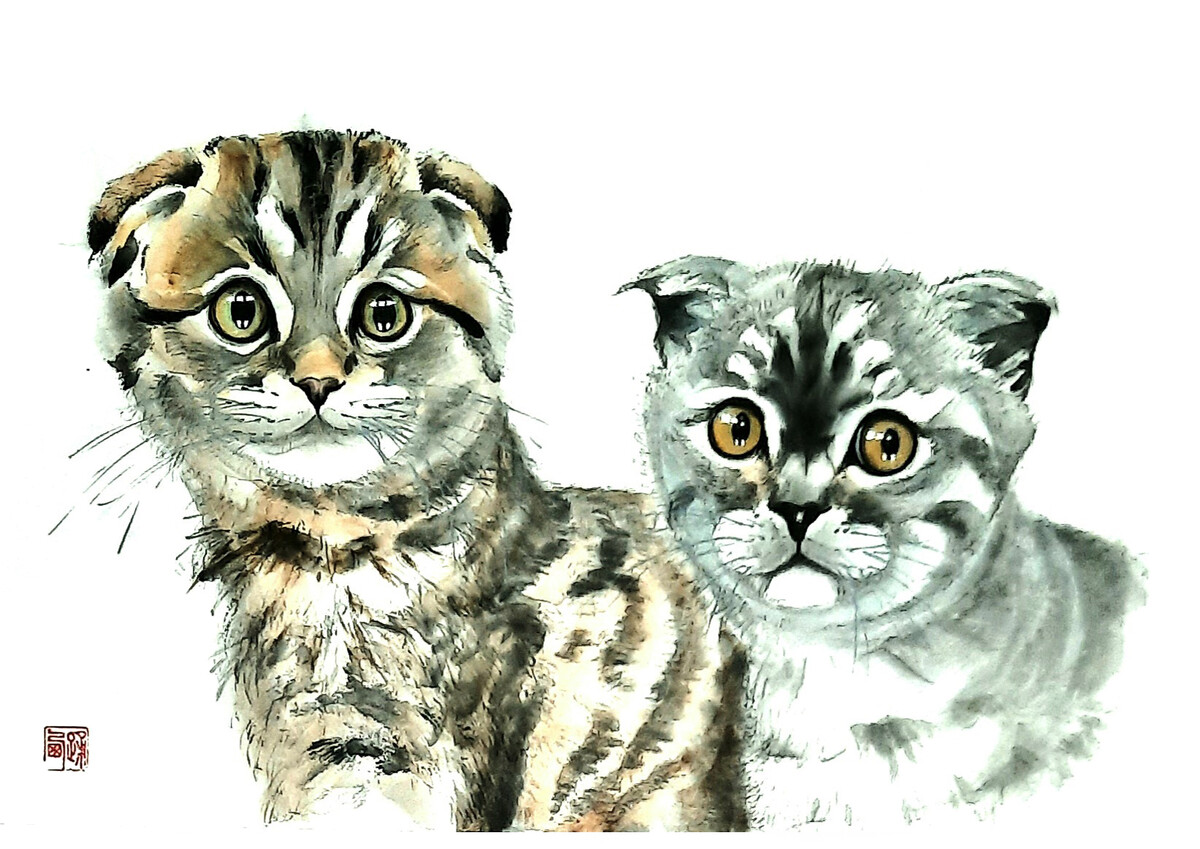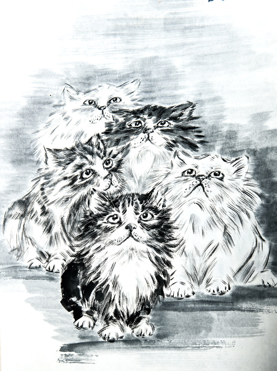 - Научитесь передавать тушью и минеральными красками шерсть: гладкую и пушистую, длинную и короткую, однотонную и пятнистую.