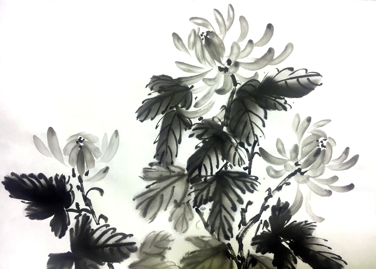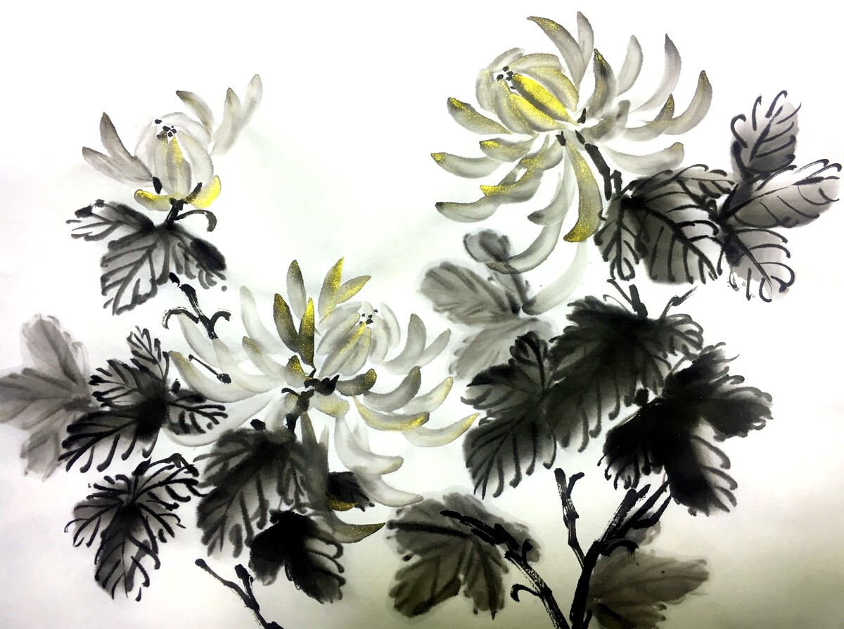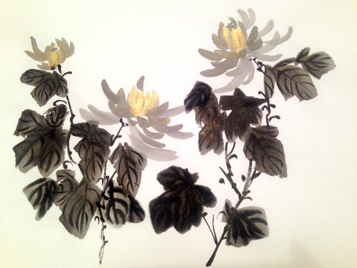 Блок состоит из 12 уроко. Сюжет на тему "Хризантема" в монохромном варианте очень богат тональными переходами и интересное по своей стурктуре. На примере данного сюжета мы разберем несколько техник набора туши на кисть, а так же использование золотой краски в технике суми-э.