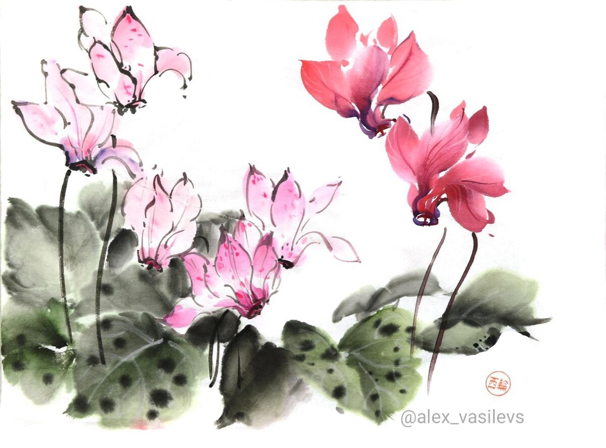 Александра, очередное "обыкновенное чудо" - спасибо за волшебный весенний курс! Как Вы знаете, у меня был длительный перерыв в занятиях суми-э из-за травмы, и как следствие сомнения и страхи: вдруг всё забылось, ничего не получится? Саша, не перестану повторять: "Вы Учитель от Бога!" Подача материала, разбор "на атомы" каждой композиции, оценка и бесценные советы (всегда очень тактичные) после выполнения домашних заданий - всё это создаёт неповторимую атмосферу красоты и доброты Вашей он-лайн школы. Я счастлива, что снова в Вашей команде, руки "помнят", как оказалось)) Мне всегда нравились цикламены - хрупкие, нежные, но в то же время гордые и независимые. Теперь люблю их ещё больше. Рисовать эти цветы - одно удовольствие. Ещё раз огромное спасибо за курс и до новых встреч ⭐🙏❤️❤️❤️