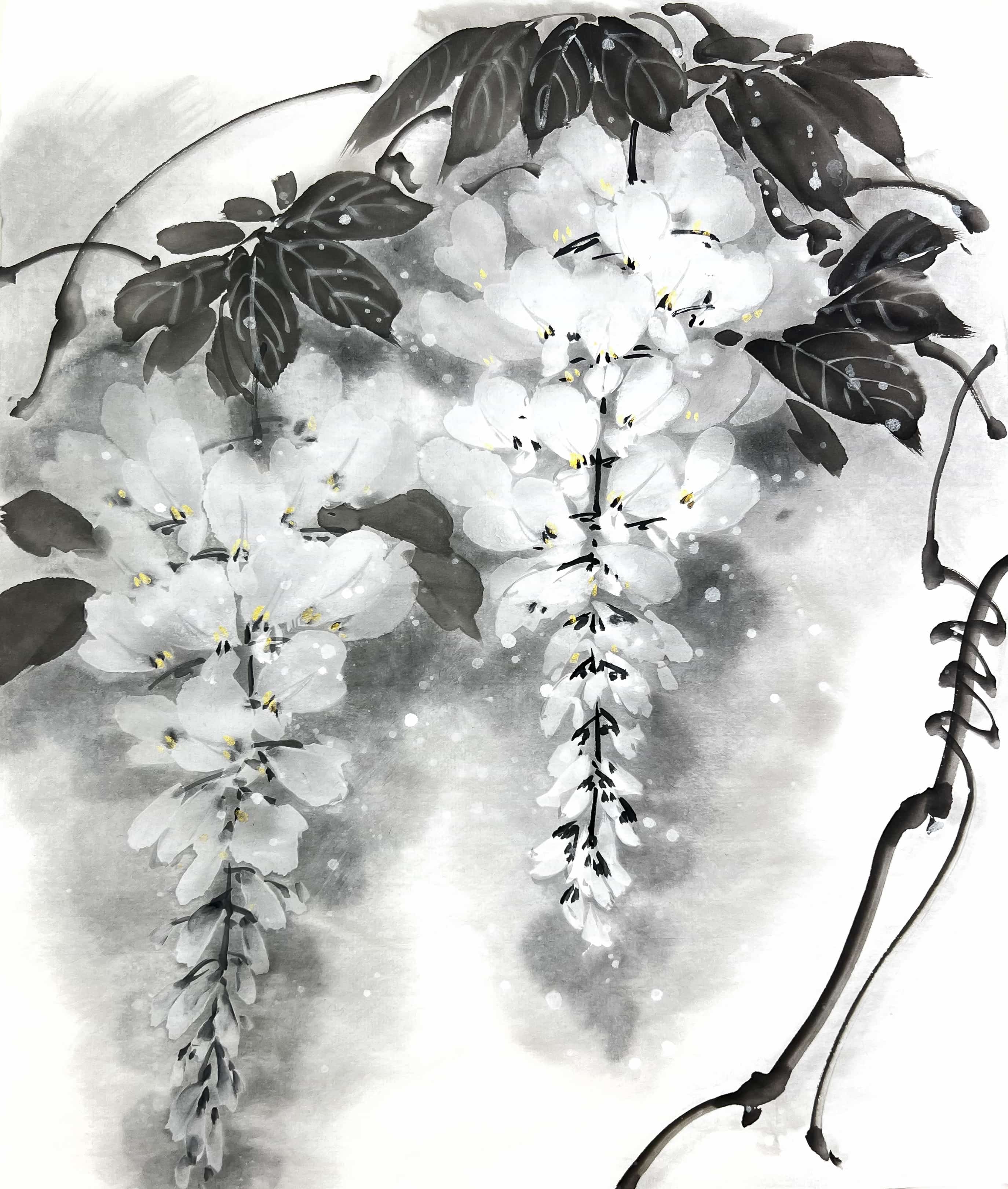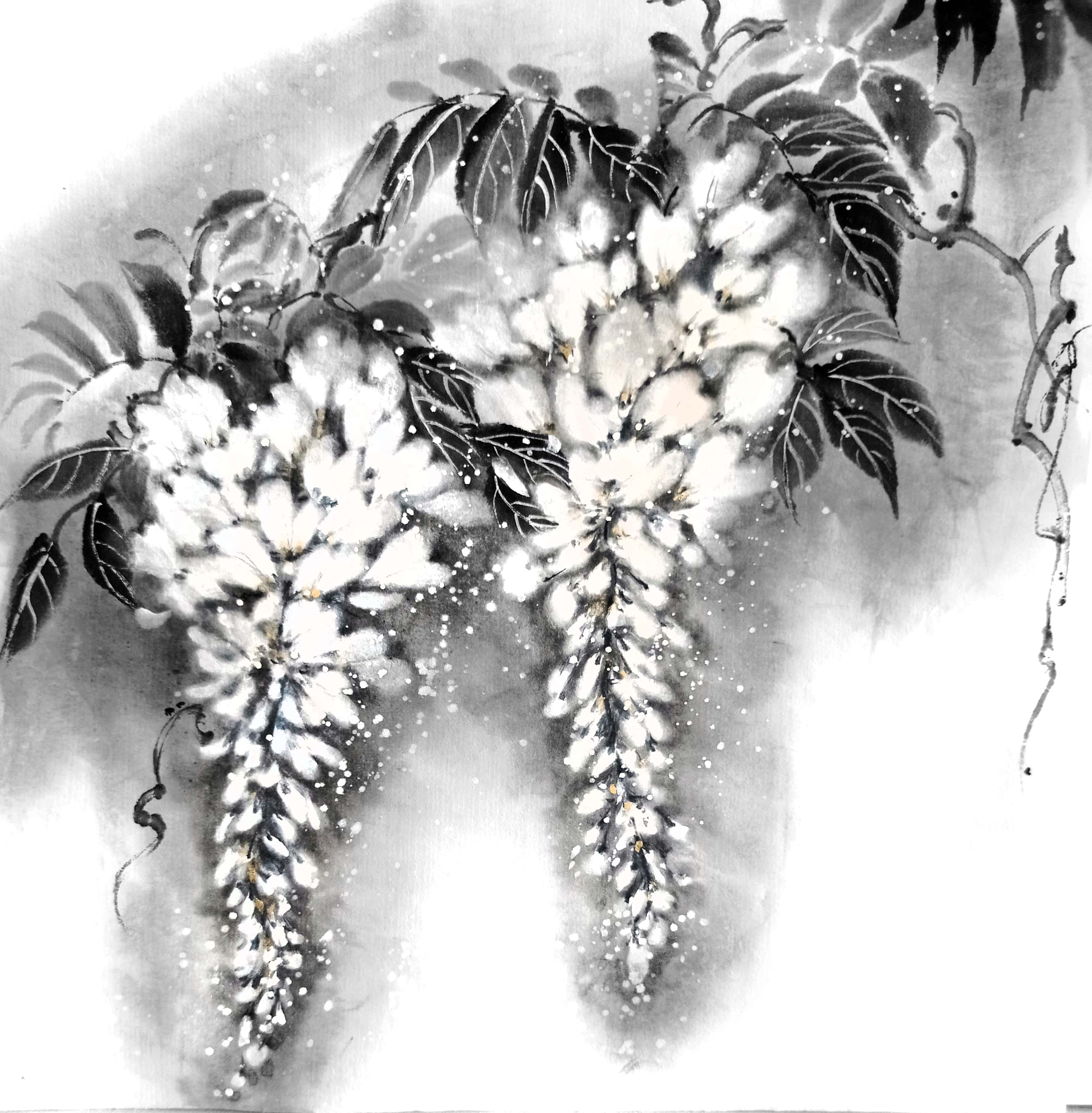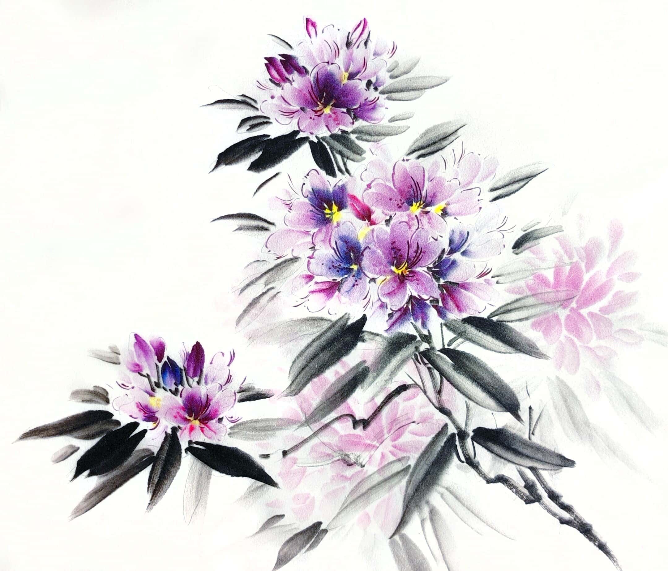 Глициния и азалия в стиле суми-э - работы Александры Васильевой