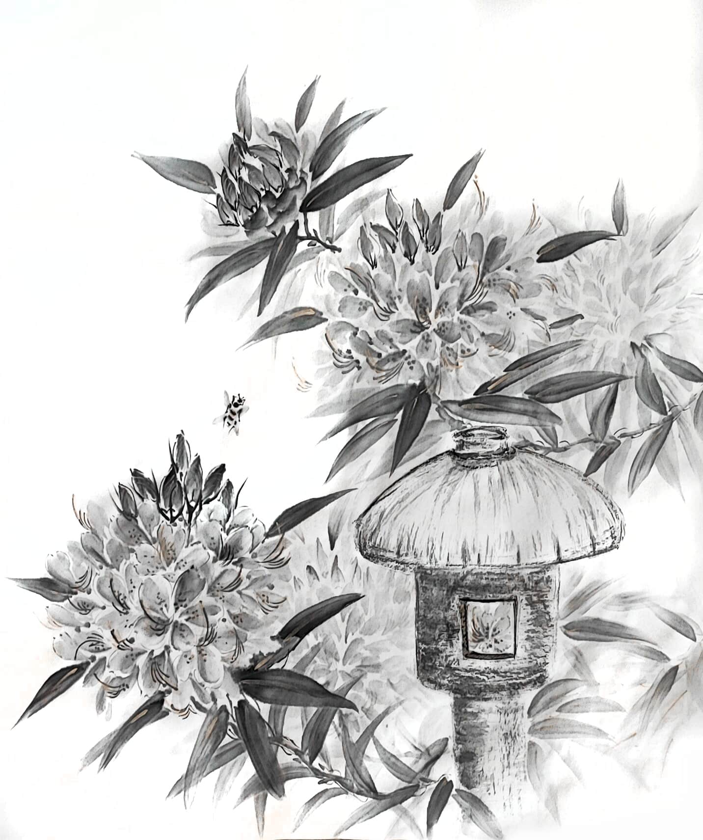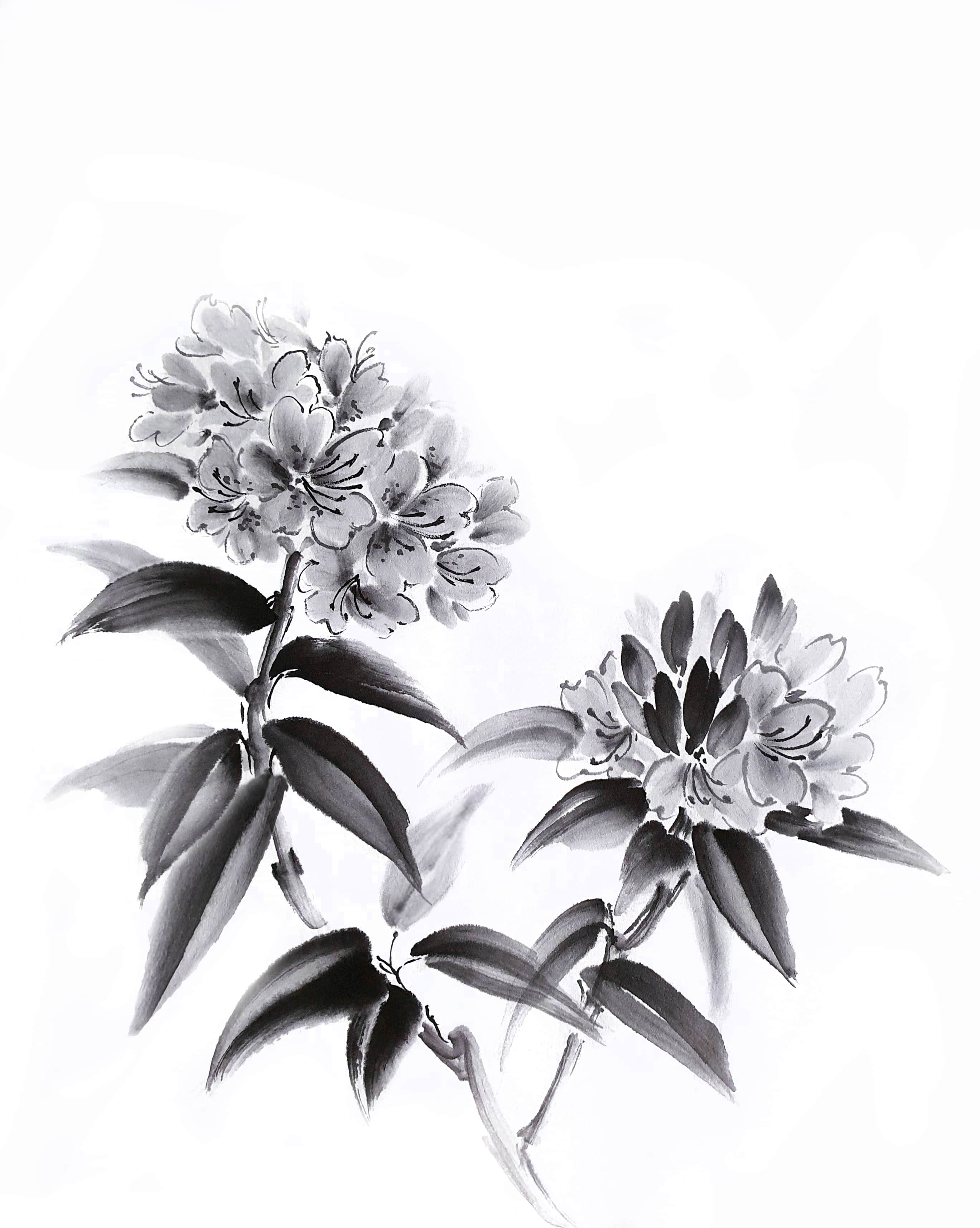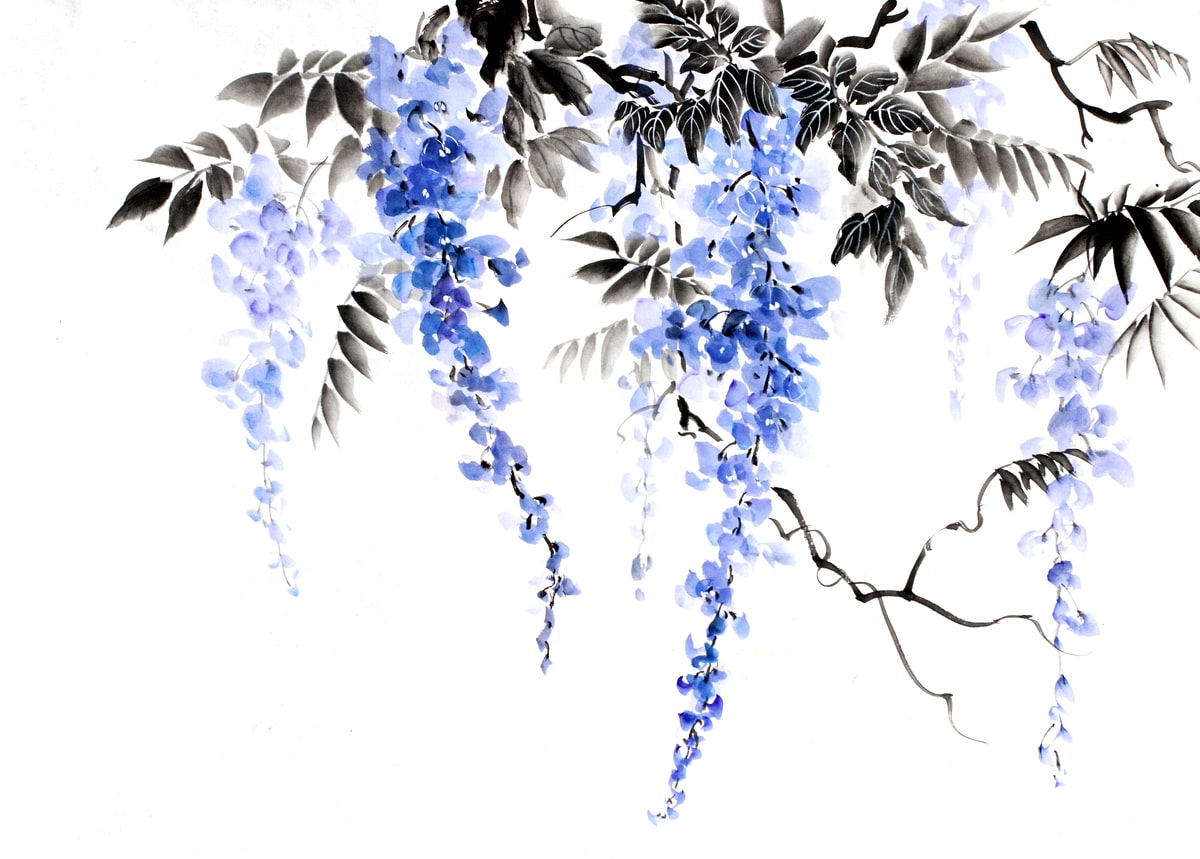 Глициния и азалия в стиле суми-э - работы Александры Васильевой
