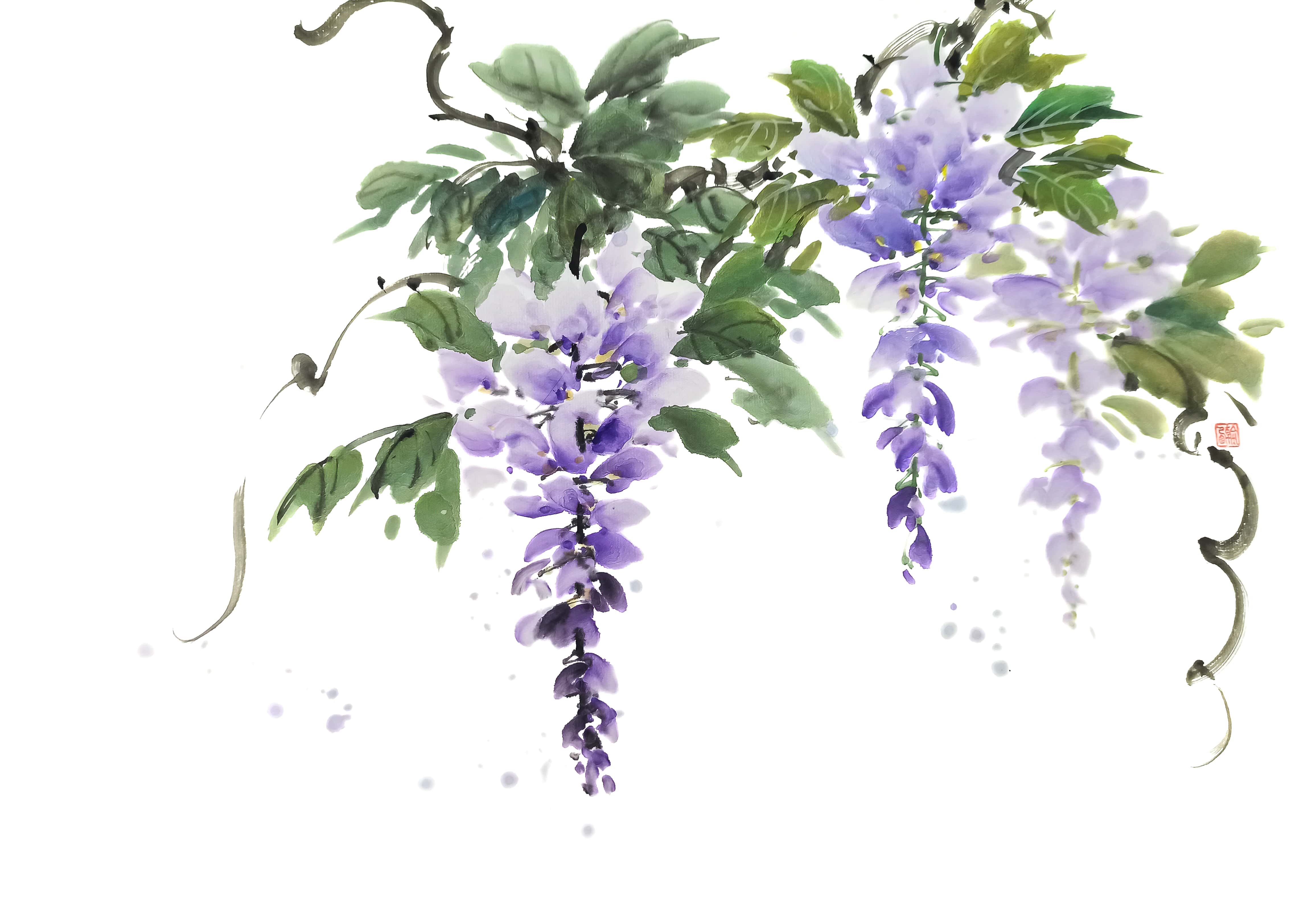 8. Пишем большую композицию с несколькими соцветиями глицинии разного плана