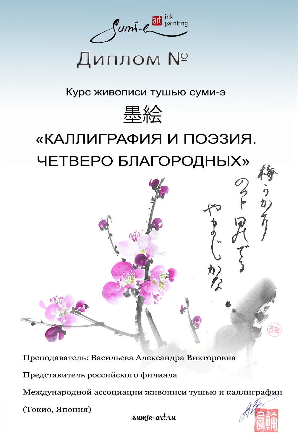 Диплом будет давать право на скидку на прохождение других курсов нашей школы живописи суми-э