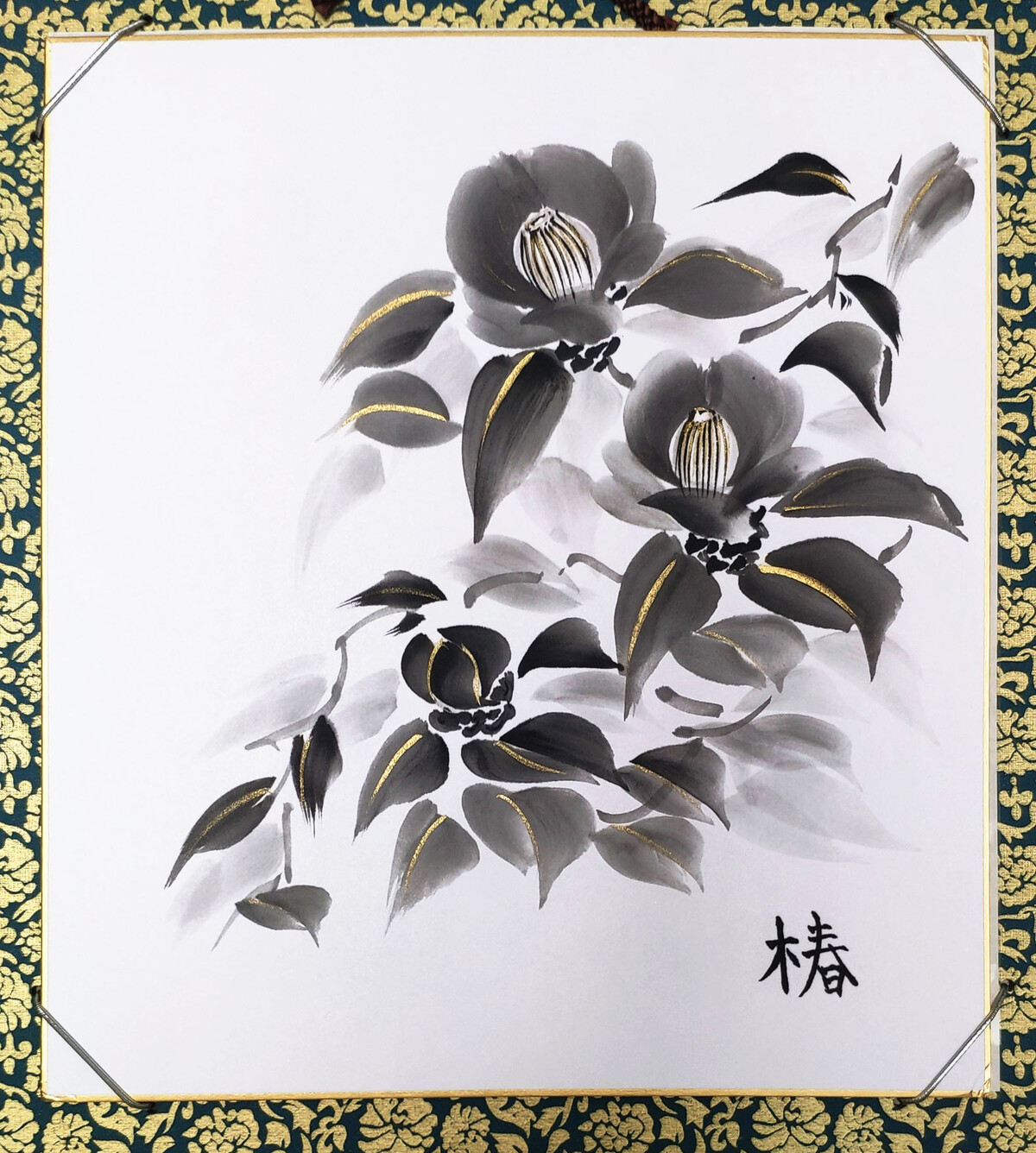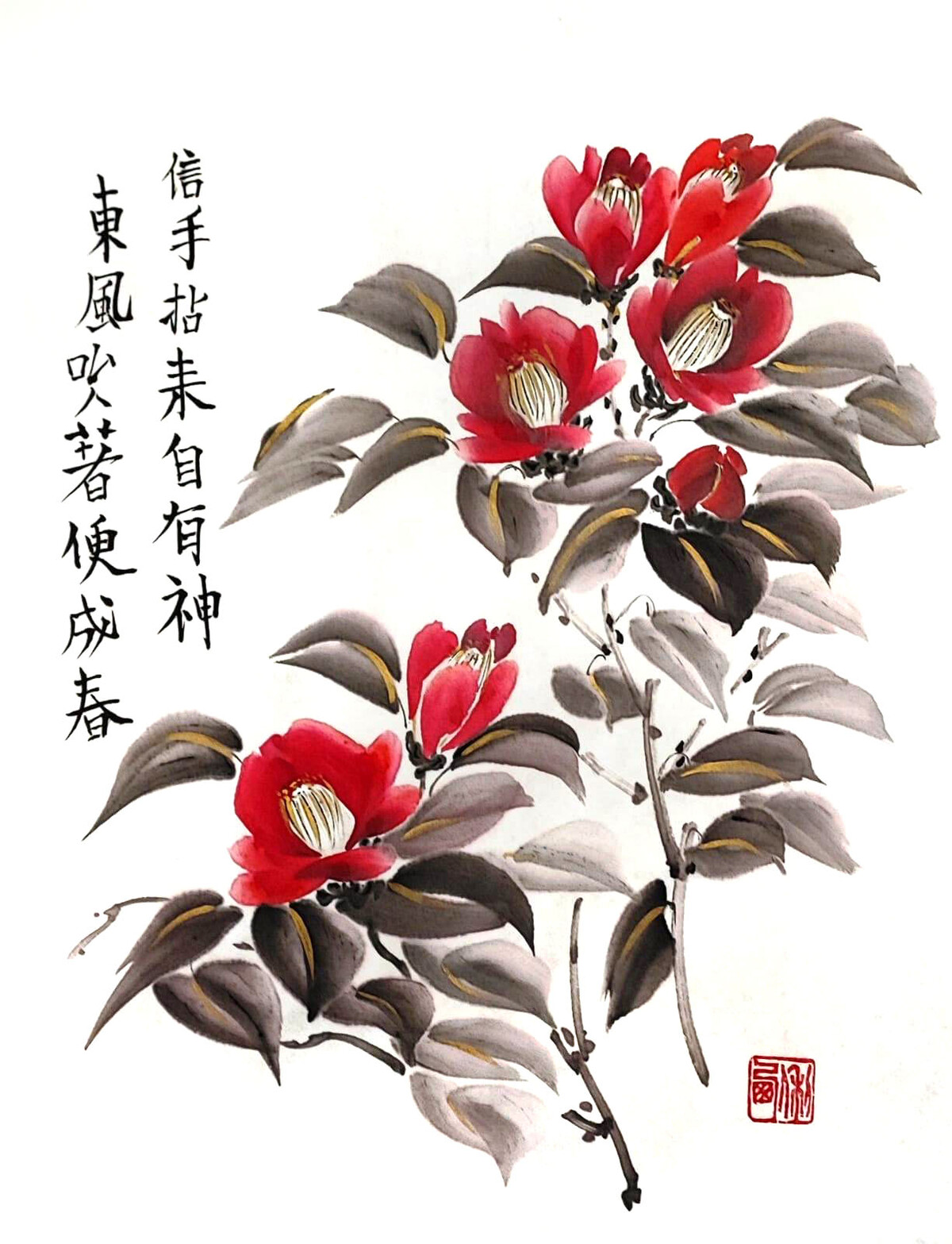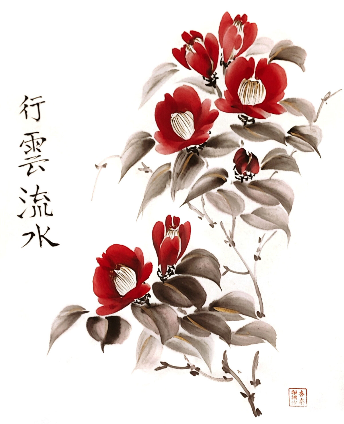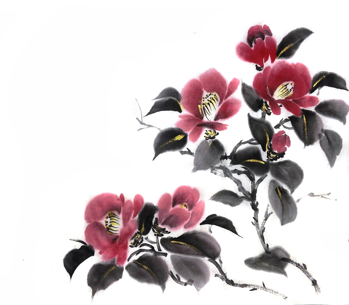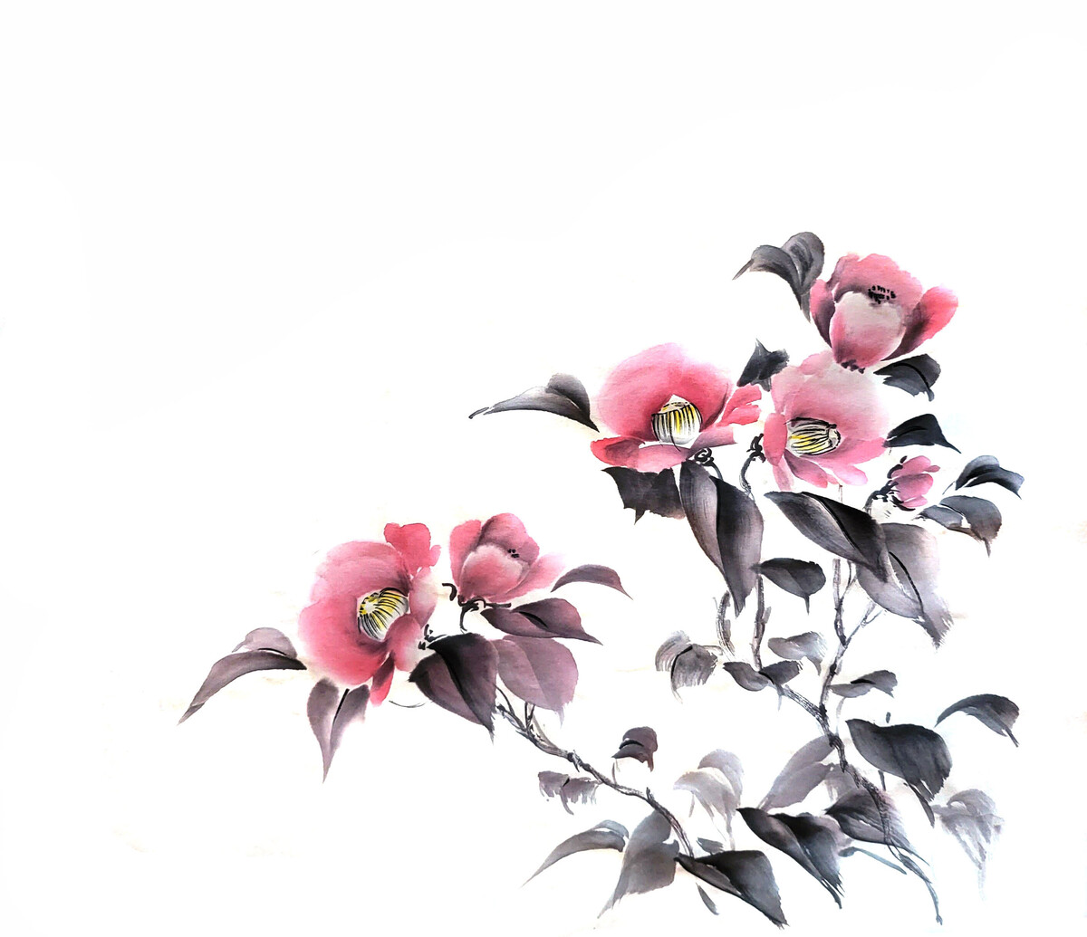 1. 4 готовых композиций на тему цветка камелии в разных техниках.