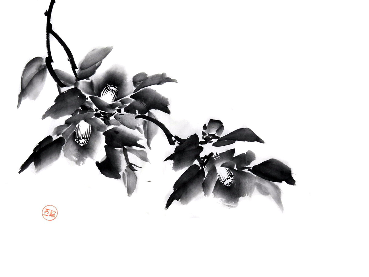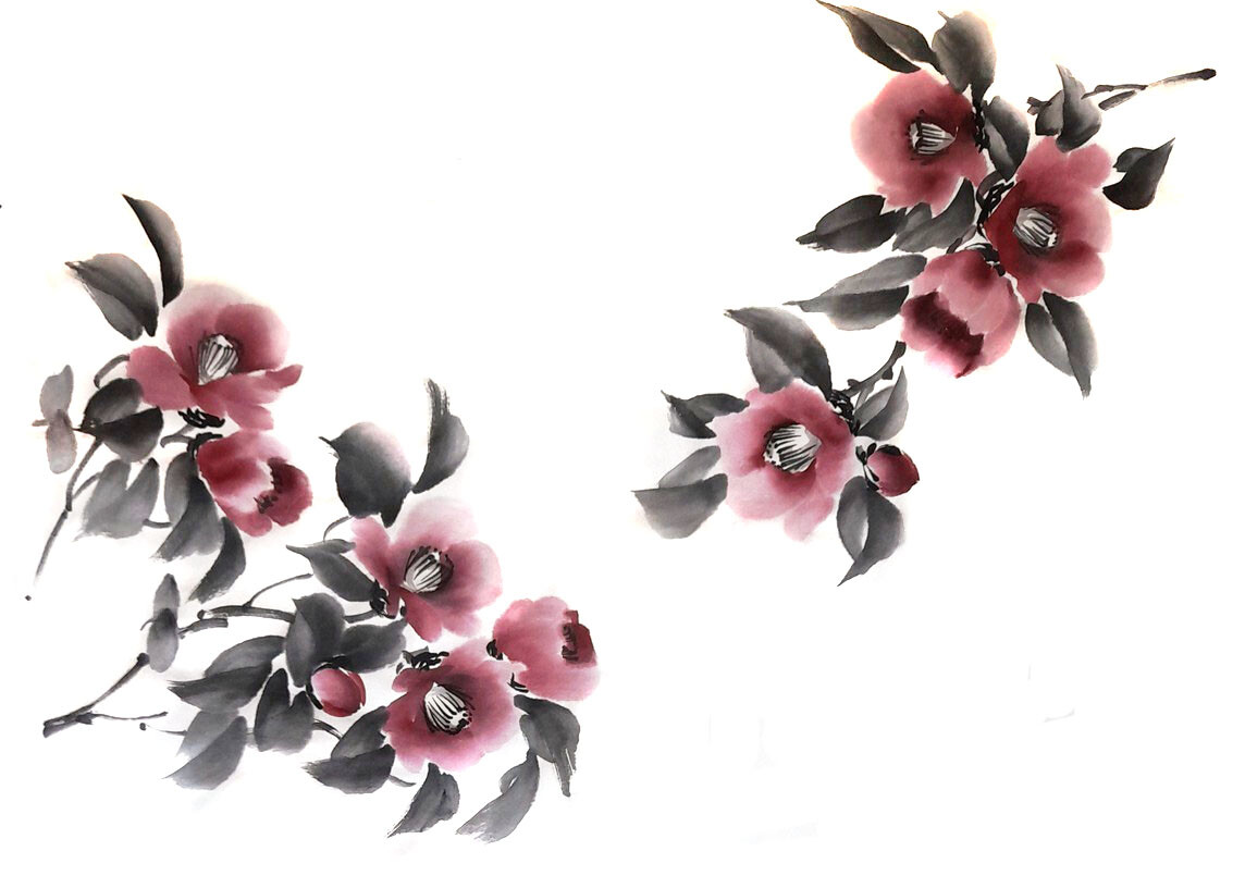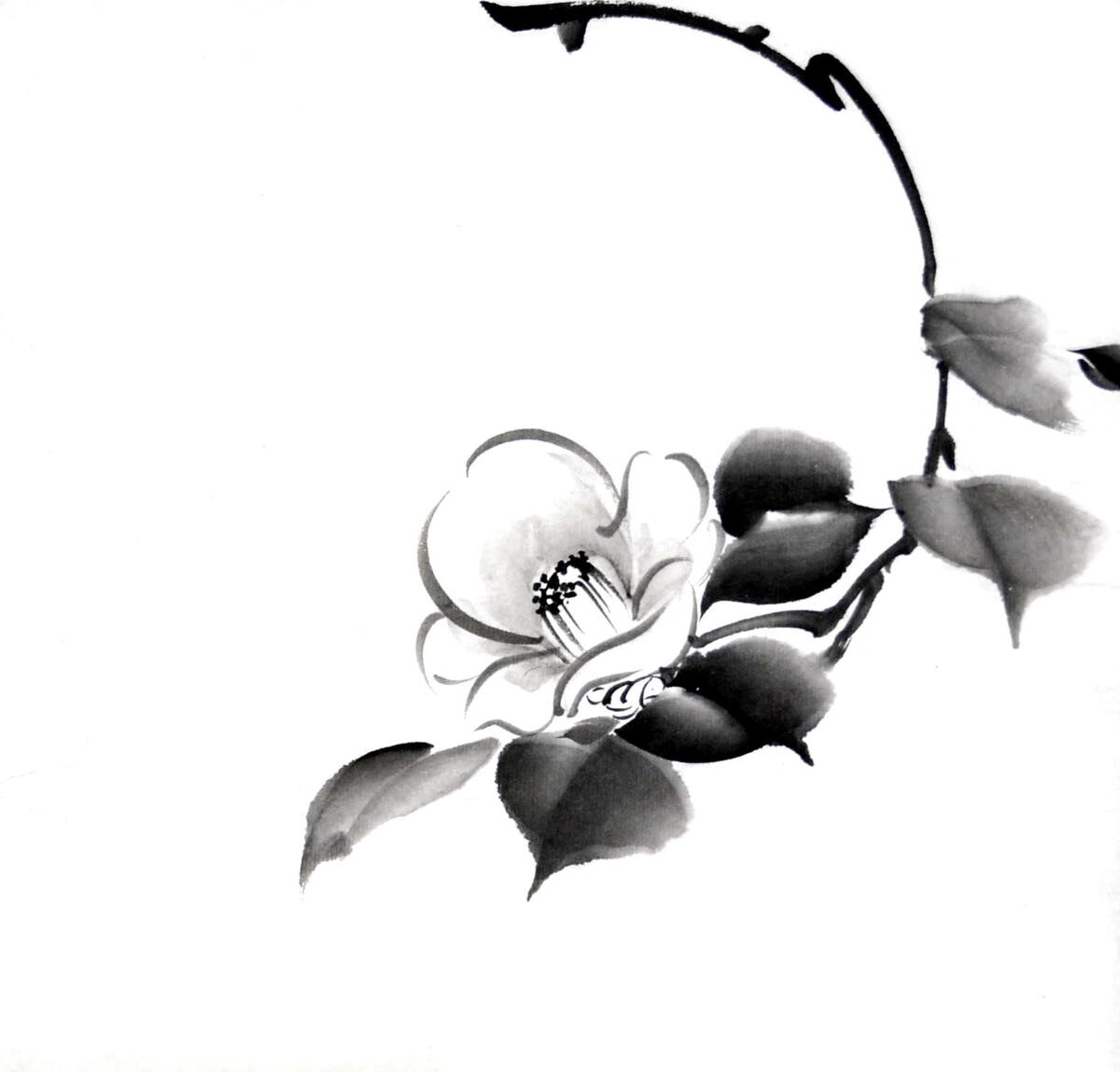 1. Геометрия цветка. Изучаем монохромную технику написания цветов камелии в разных ракурсах.