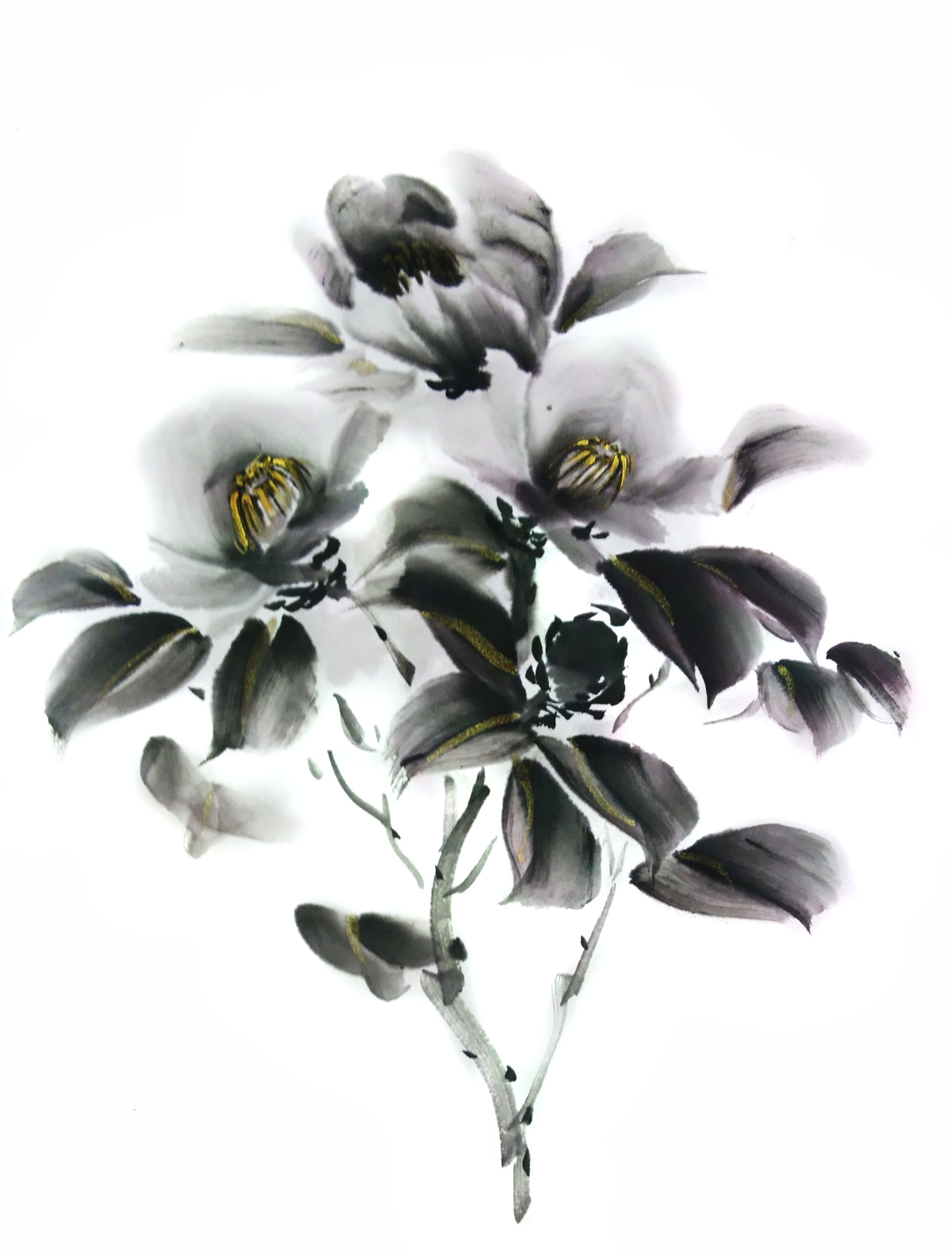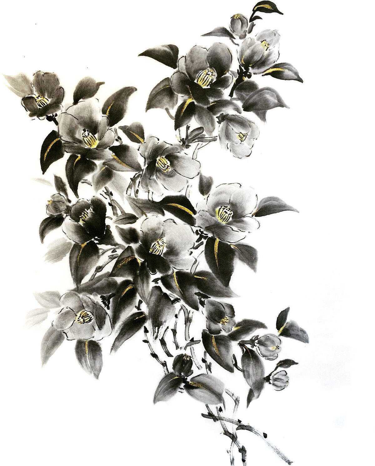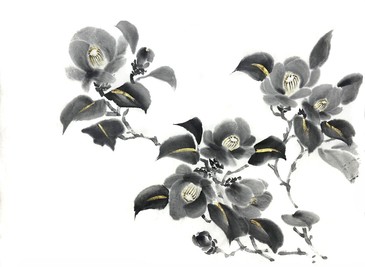1. Геометрия цветка. Изучаем монохромную технику написания цветов камелии в разных ракурсах.