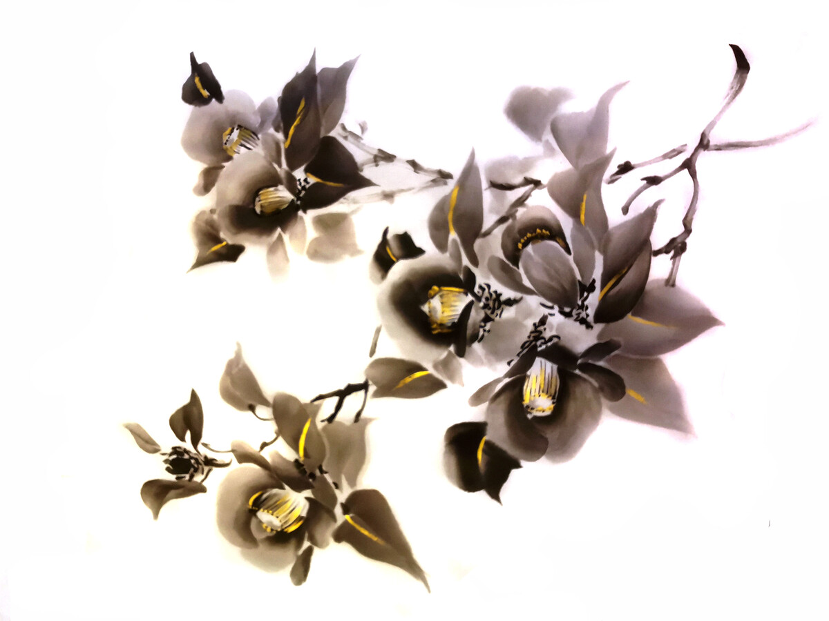 4. Создаем сложную композицию из сочетания монохромных цветов. Основы композиции в суми-э.