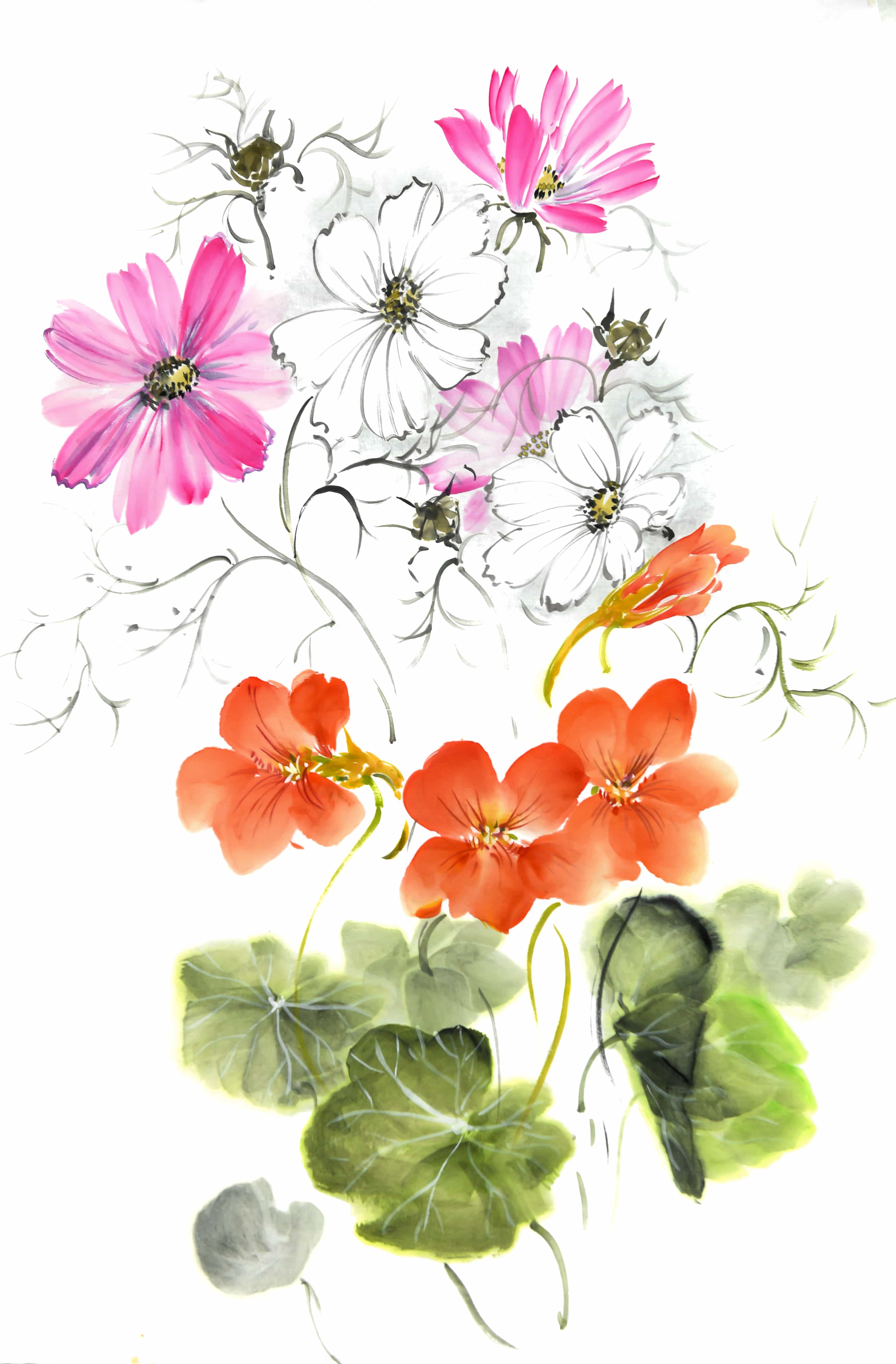 Приглашаю вас на курс, где на примере цветов космеи я поделюсь техникой со спецэффектами для написания загадочной композиции - "Инь Ян"
