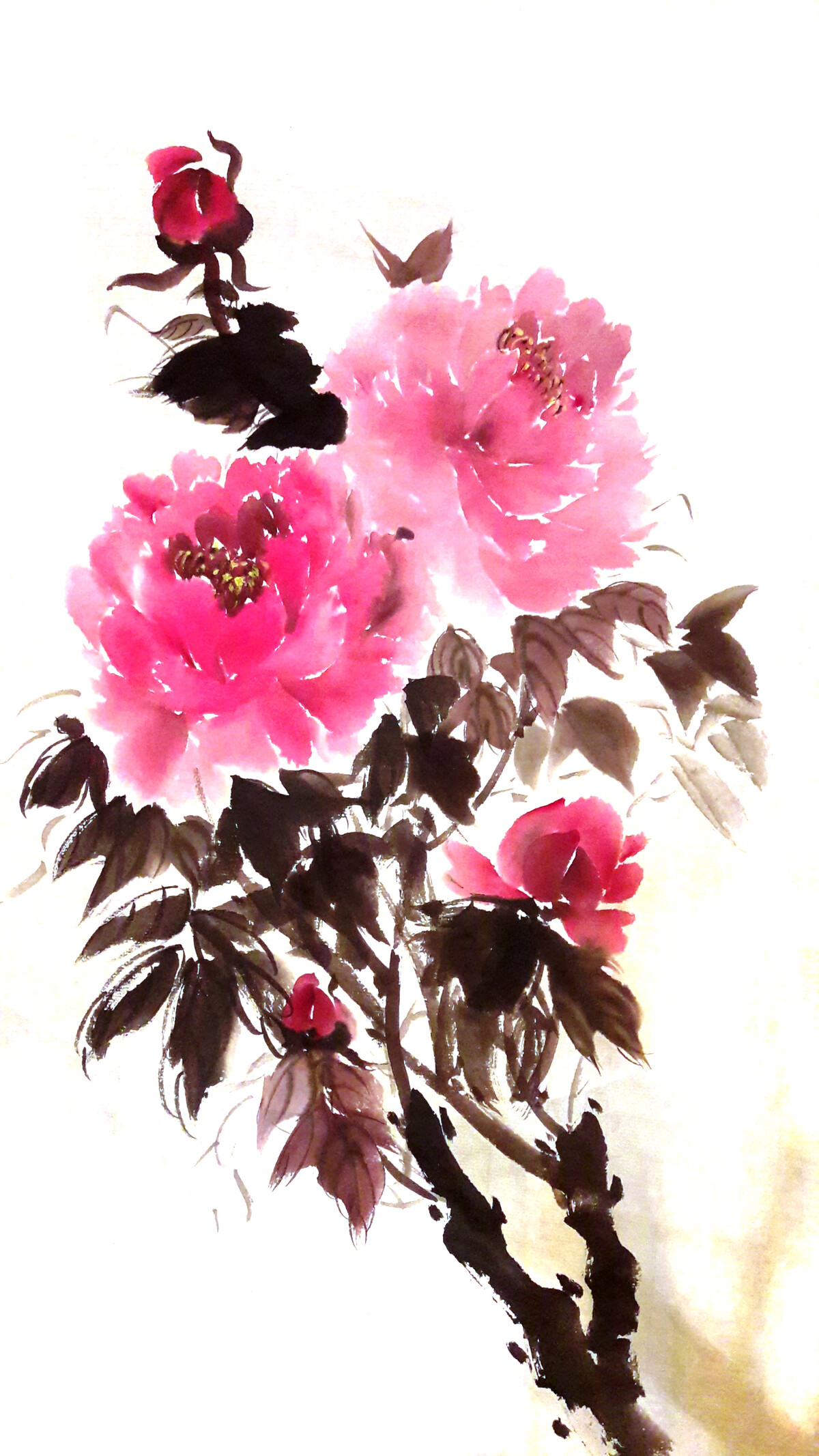Пионы - один из популярнейших цветов на Востоке, и, конечно. в нашей школе этот сюжет не обойден вниманием.