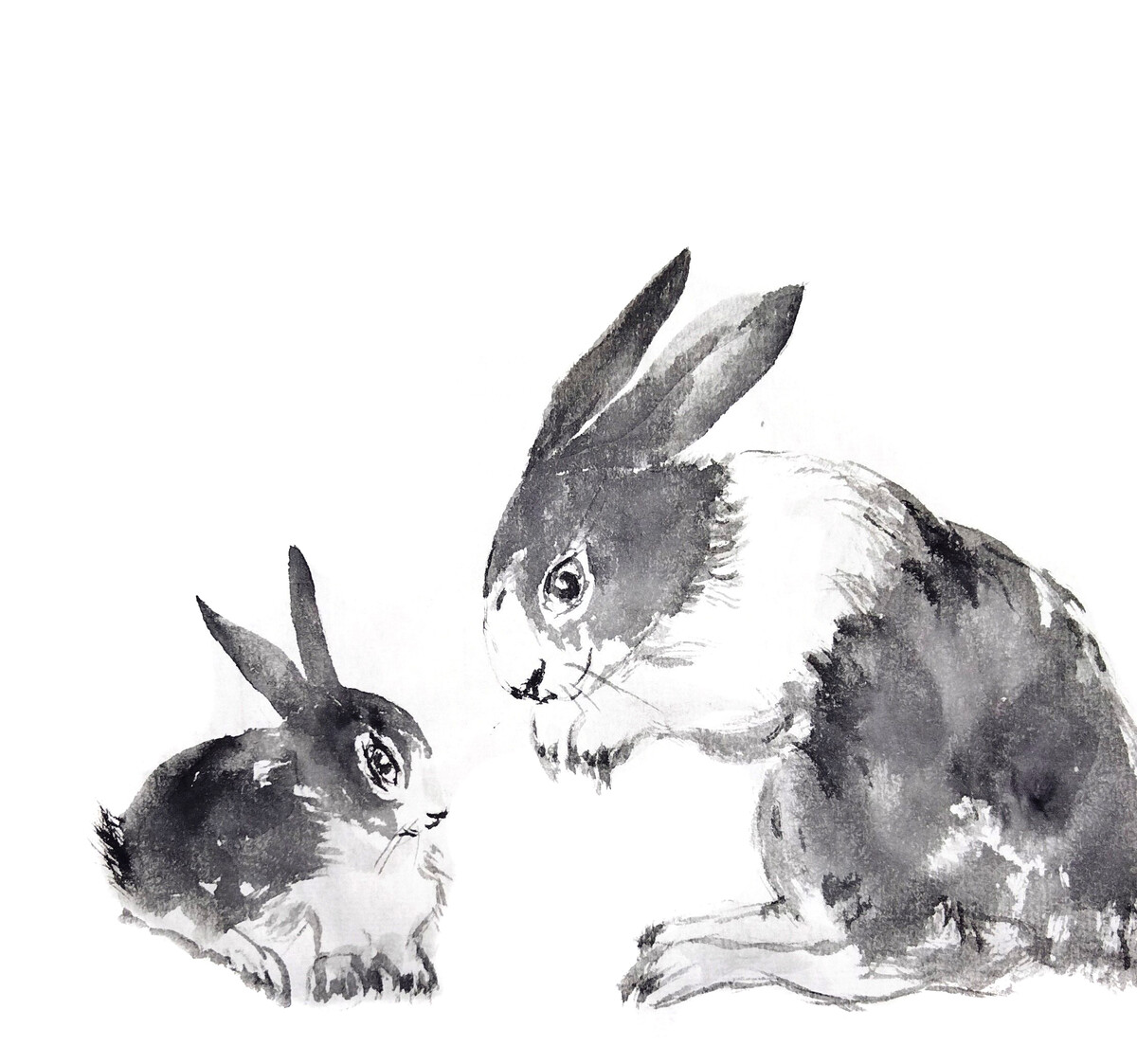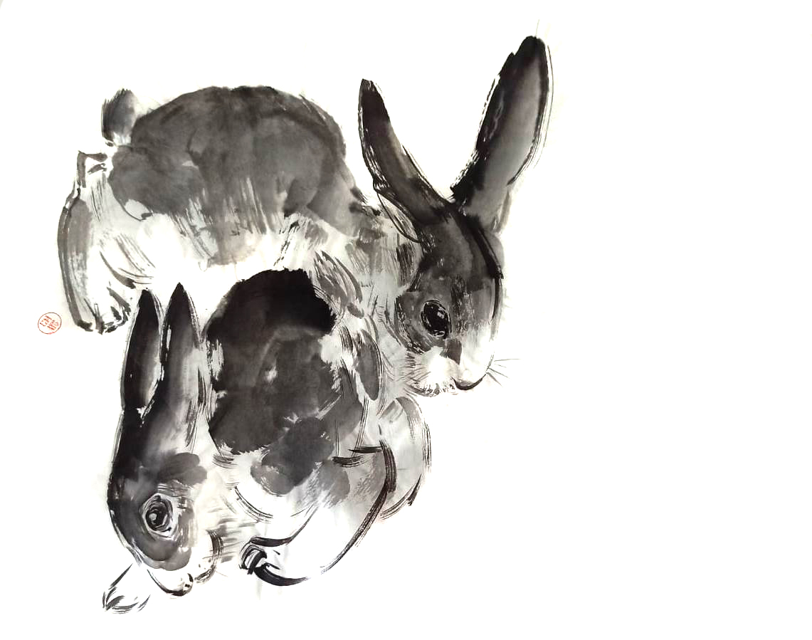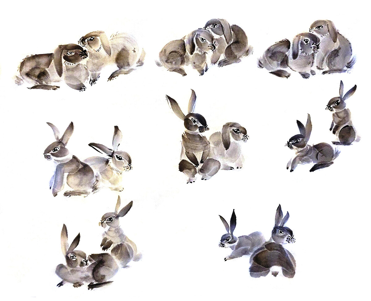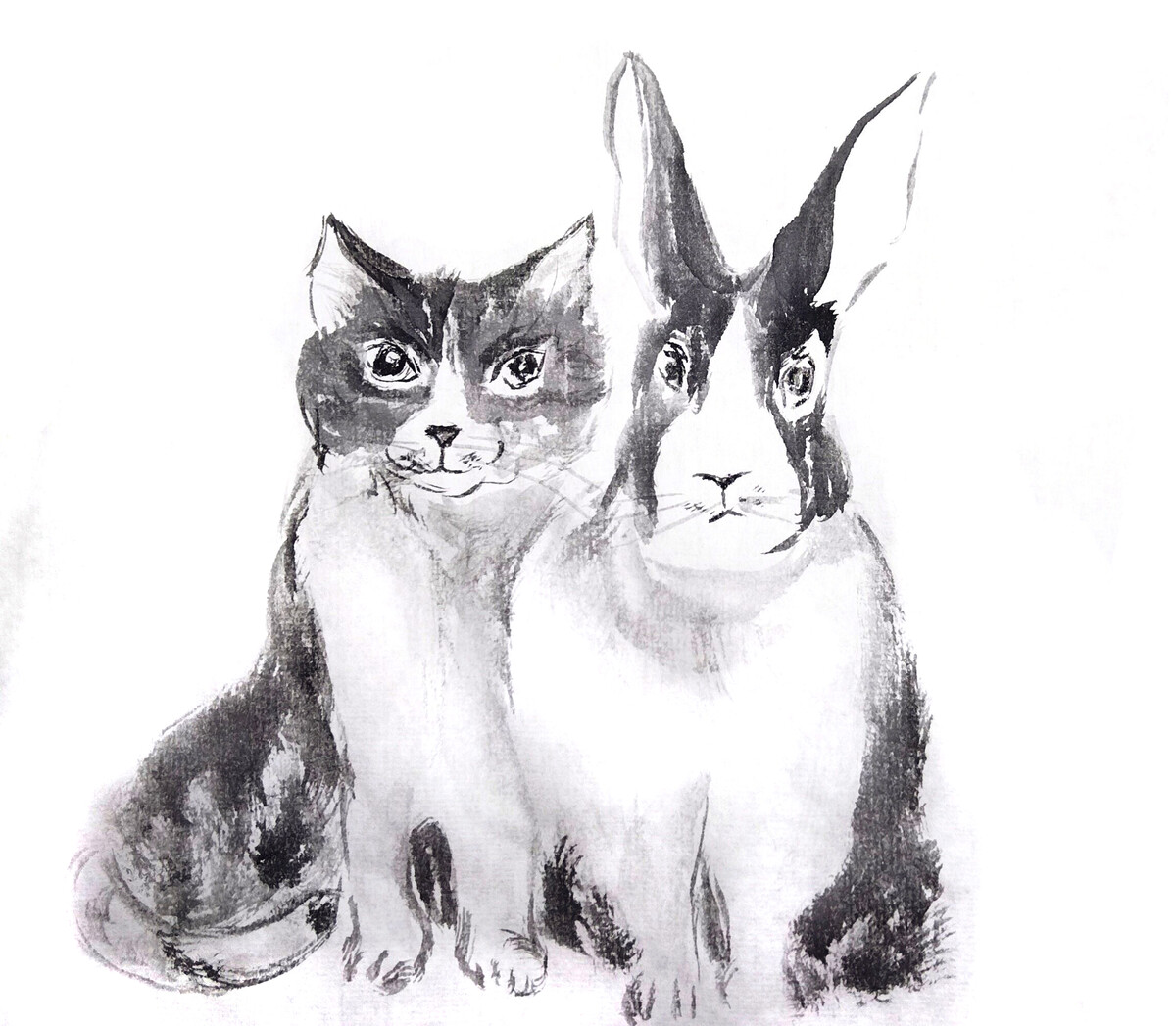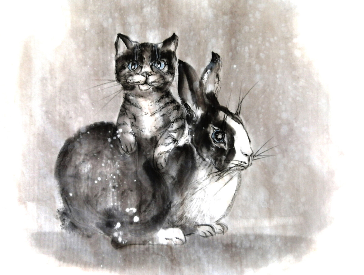 Коты и кролики в стиле суми-э - работы Александры Васильевой
