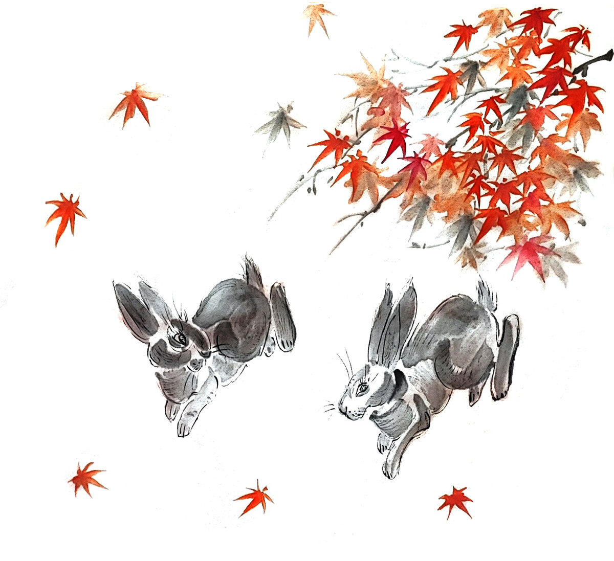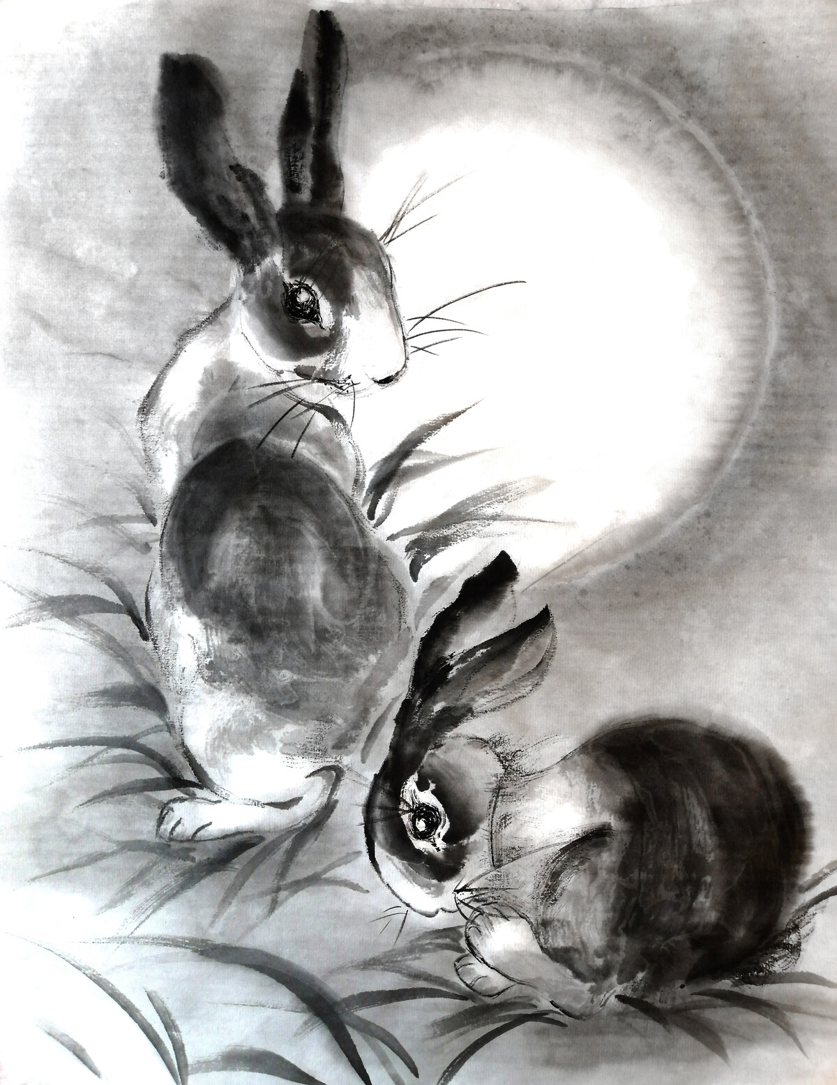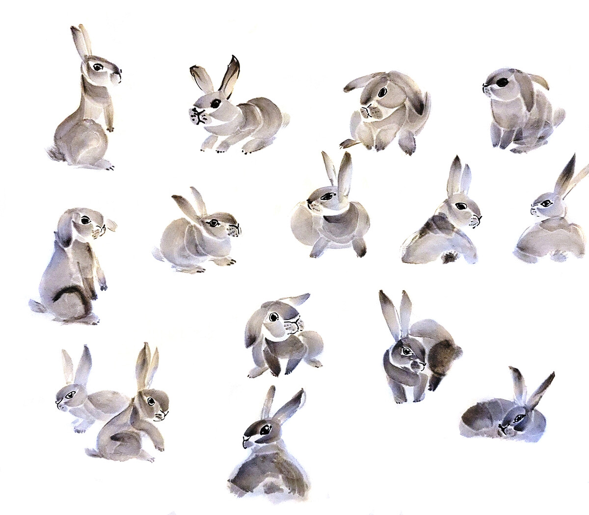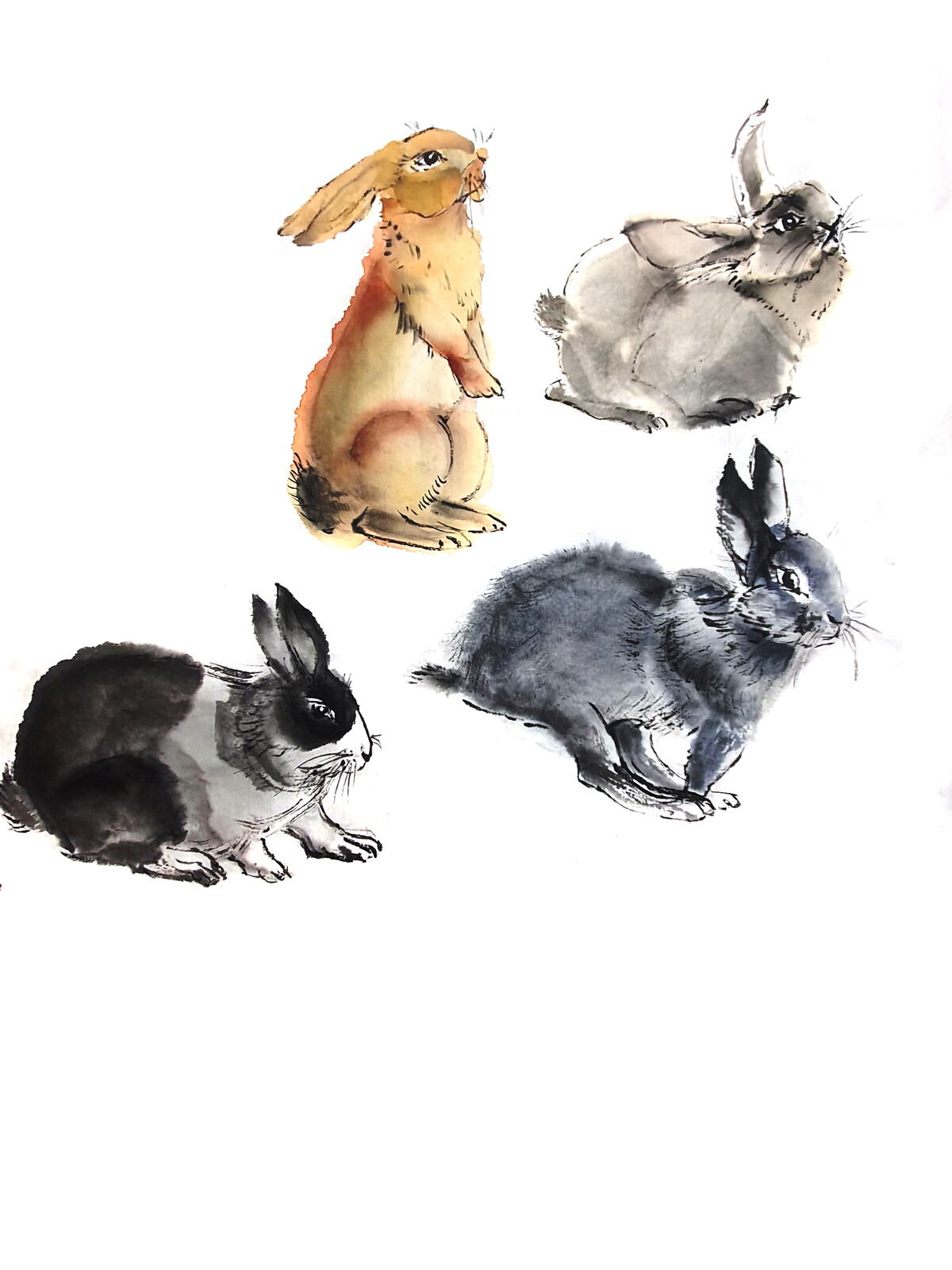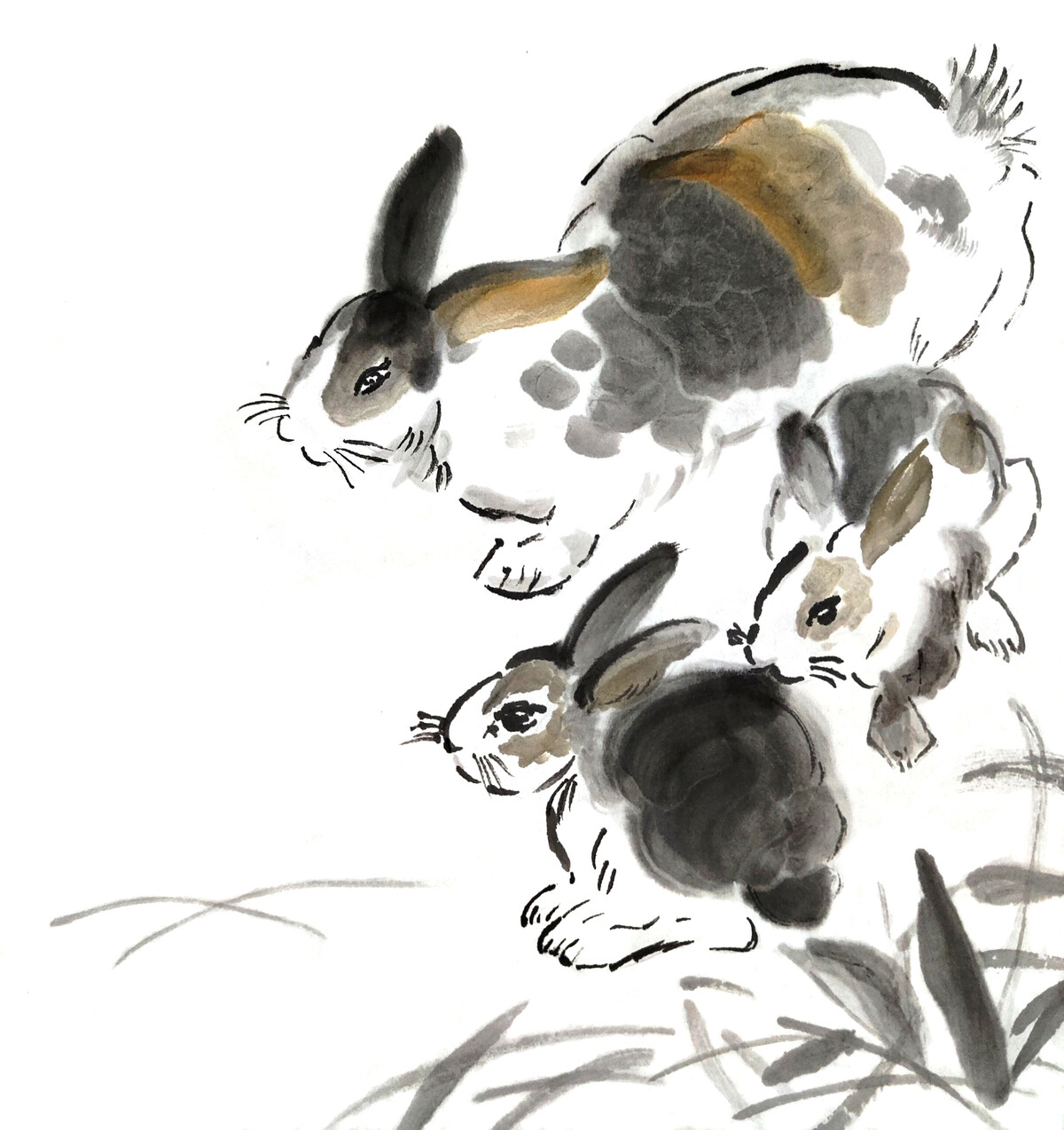 Коты и кролики в стиле суми-э - работы Александры Васильевой