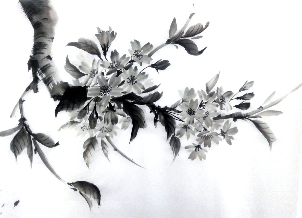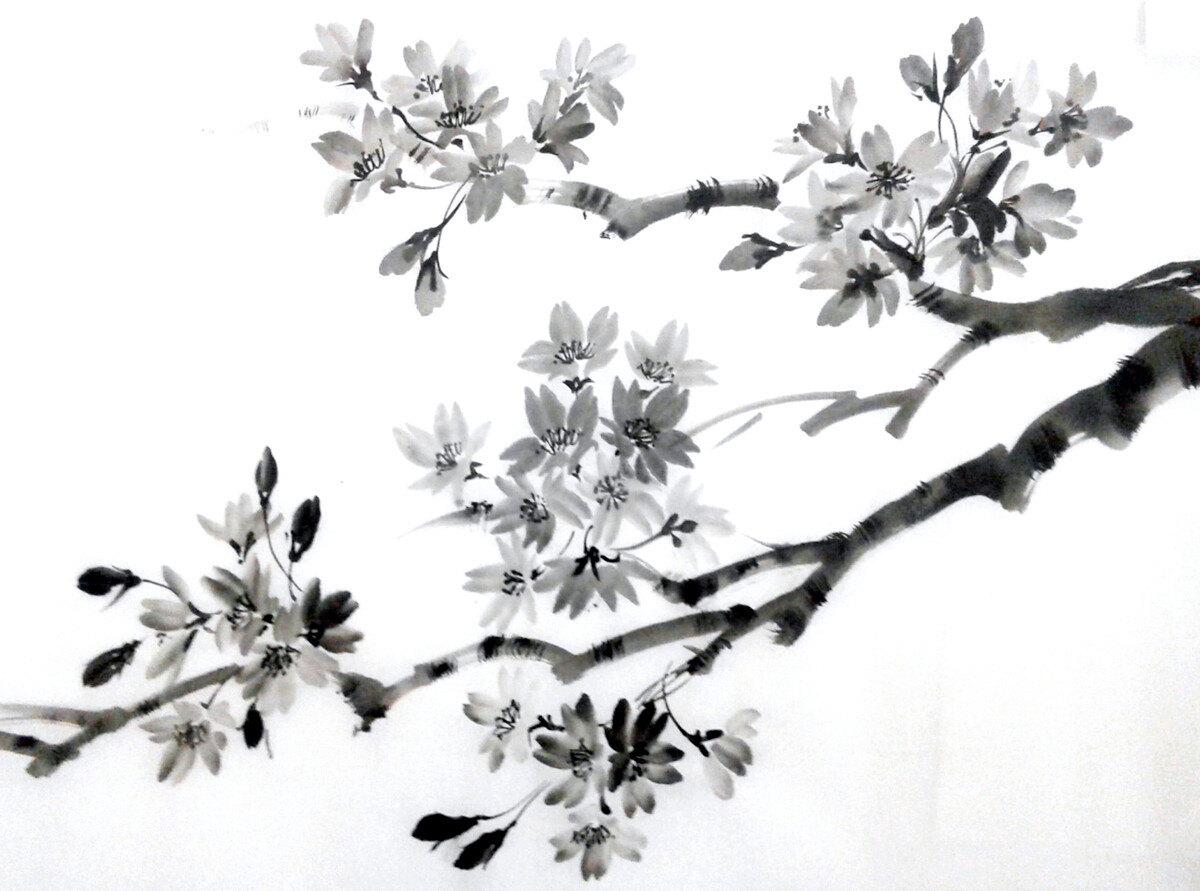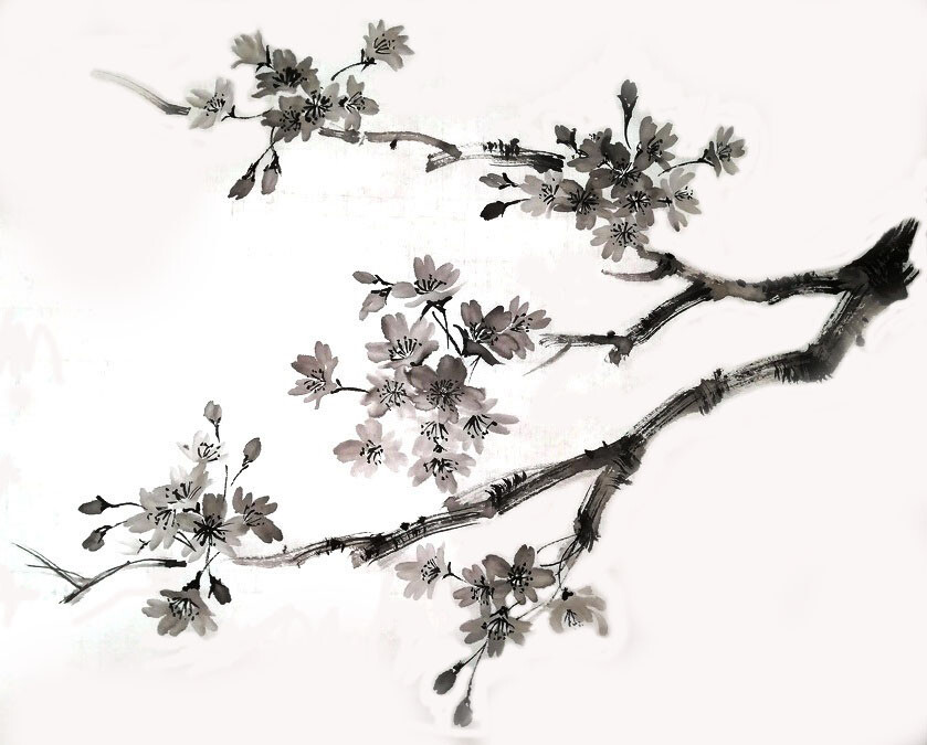 - Мы освоим технику написания живой контурной линии, которой в большинстве случаев изображаются белые цветы в технике суми-э