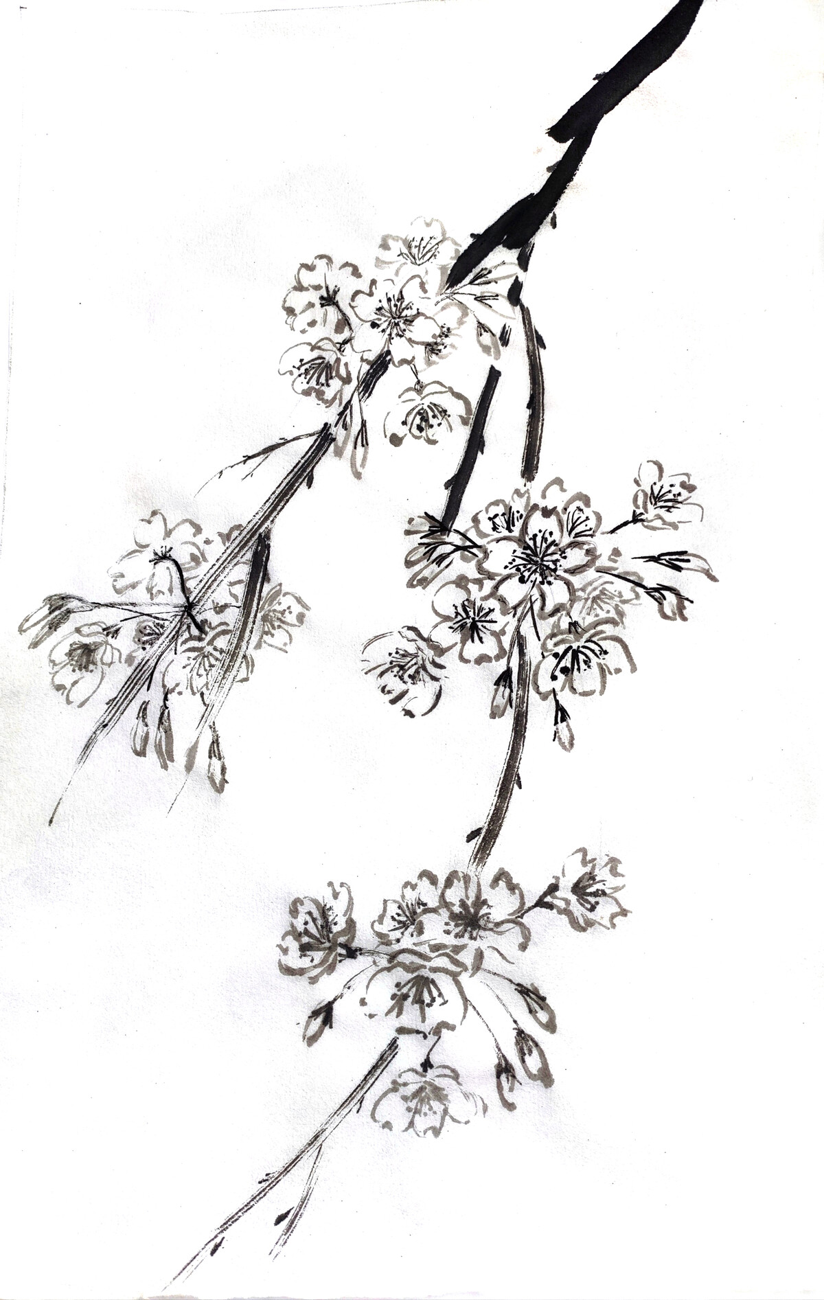 Интересно, что второй рисунок выполнен на "текучей" бумаге. Однако получилось рассчитать и количество воды, и скорость движения кисти так, что почти не заметна разница в качестве бумаги.