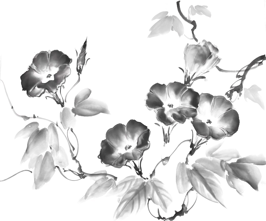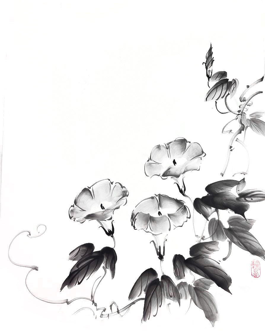 Вьюнок в стиле суми-э - работы Александры Васильевой