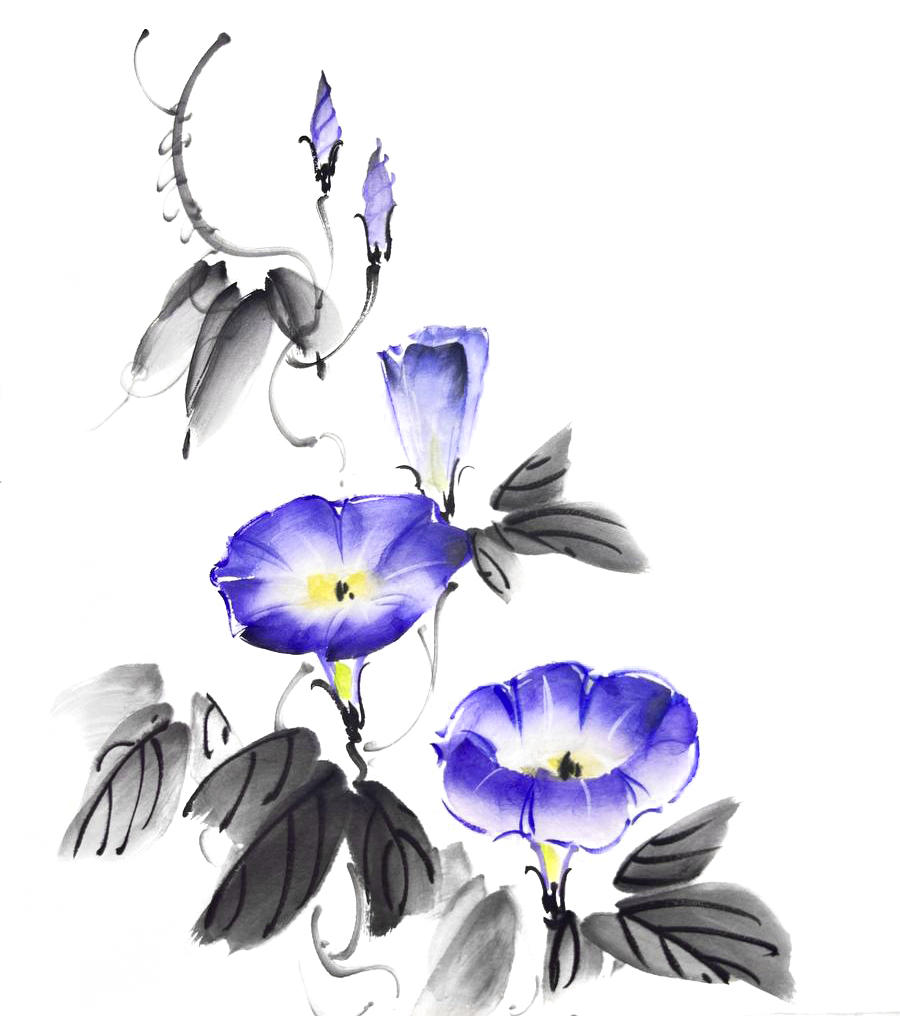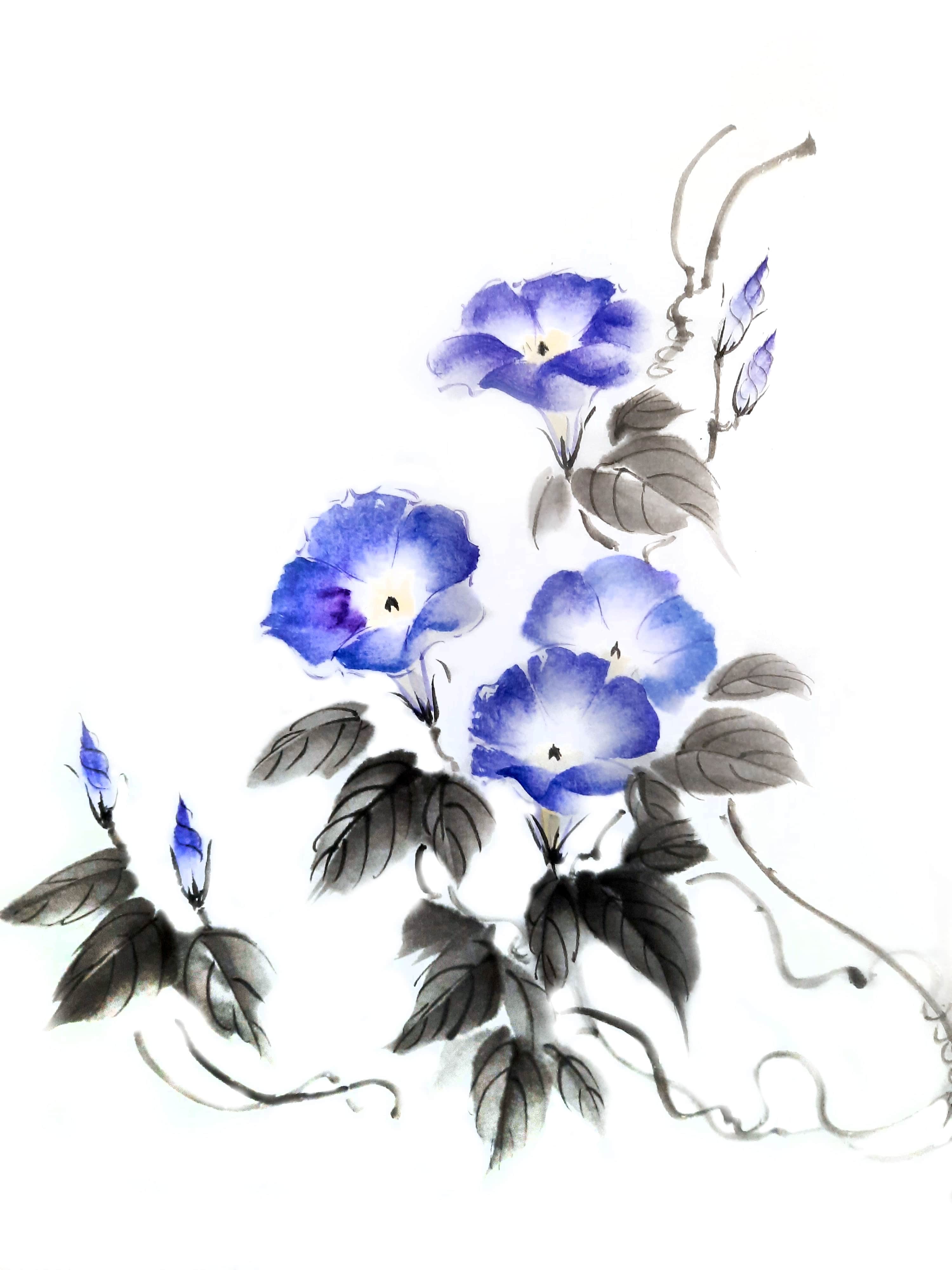 Вьюнок (Ипомея) - Aсагао. Aсагао переводится как "утренний лик". Японский вьюнок завершает собой летний сезон и так же является символом осени именно поэтому его часто можно увидеть на картинах в сочетание с осенними травами.