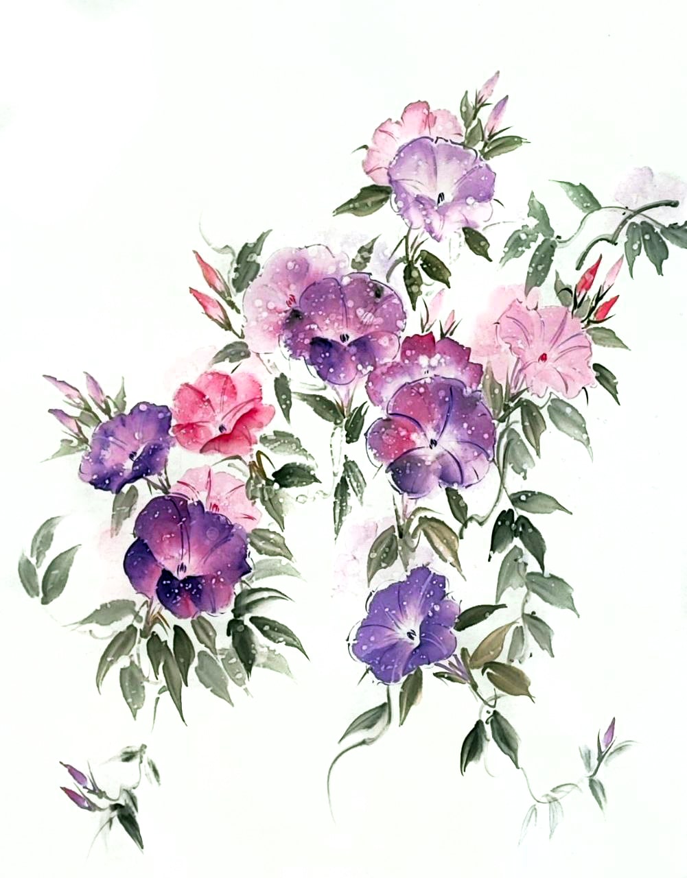 Приглашаю вас на курс, где на примере цветов вьюнка я поделюсь с вами тремя техниками написания этих прекрасных растений