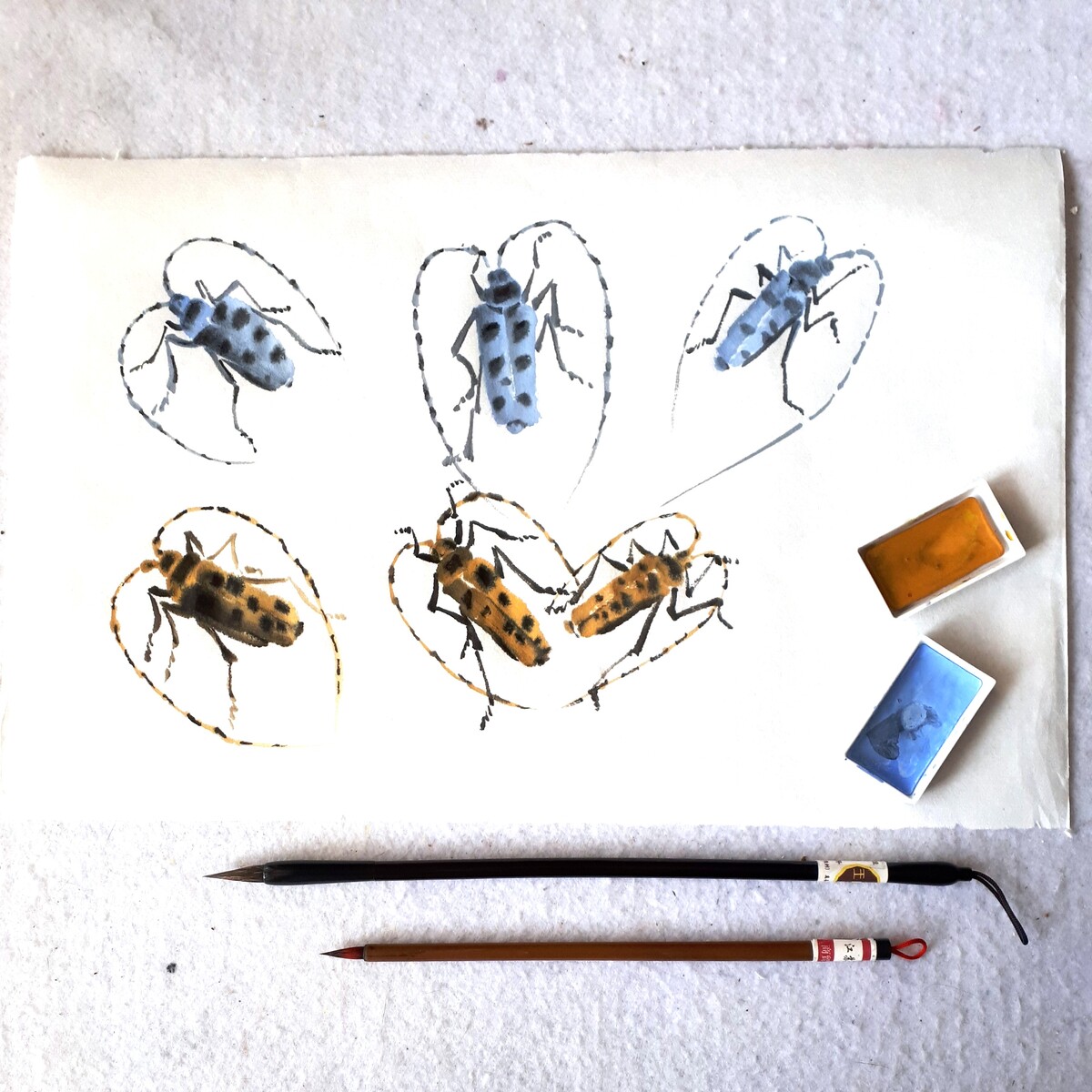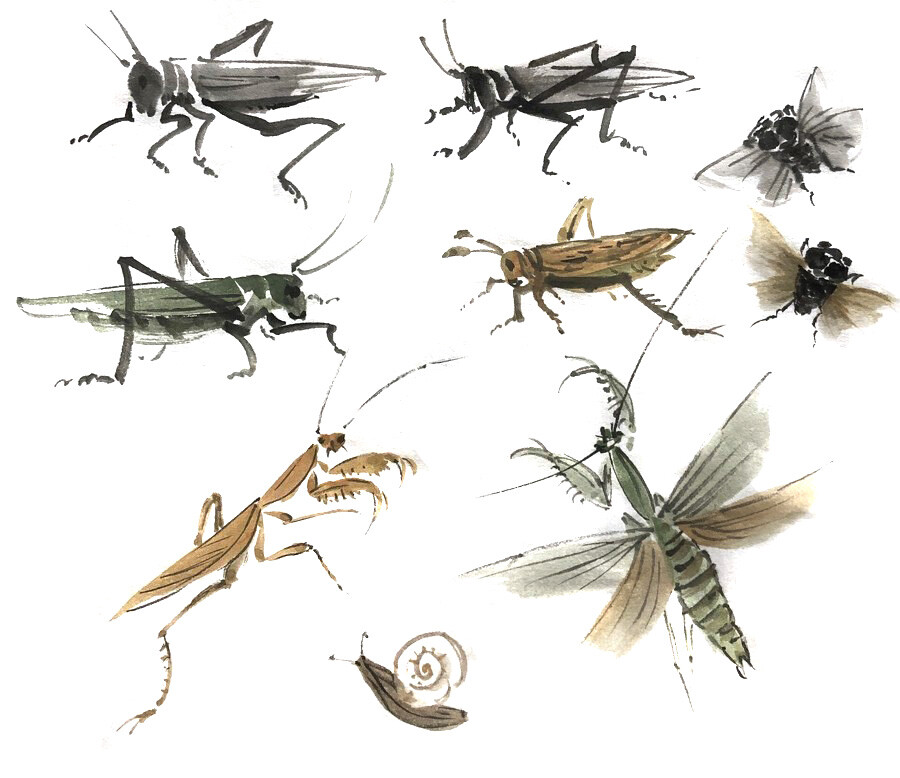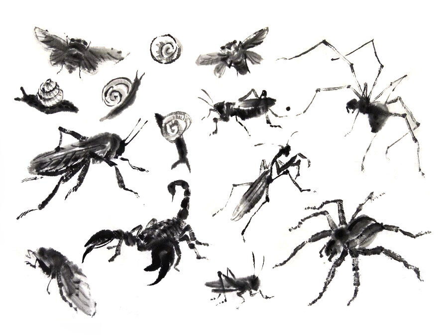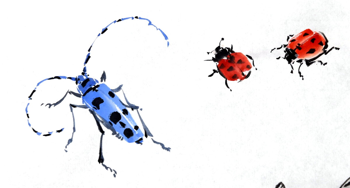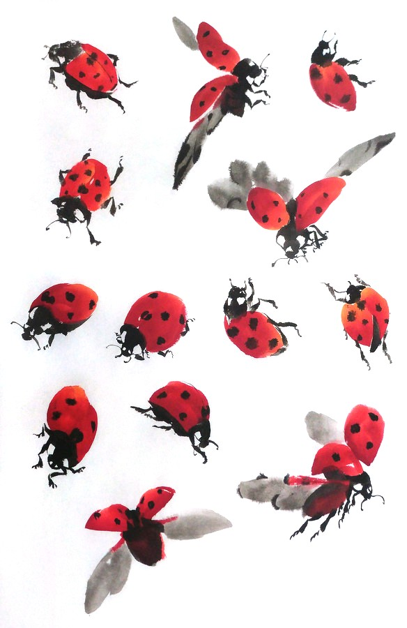 Маленькие букашки потребовали большого внимания и терпения (ох, эти тонкие лапки и переходы оттенков!). Очень понравился весь творческий процесс: от поиска фото и разбора форм насекомого до написания тушью.
